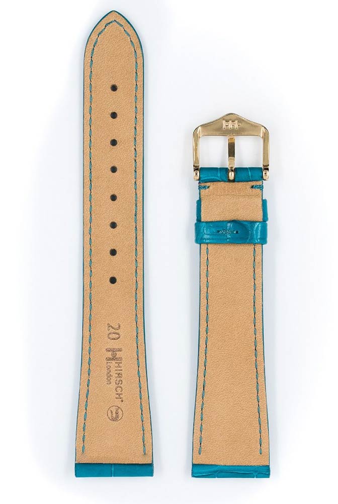 Luksusowy pasek do zegarka Hirsch London wykonany ze skóry aligatora w kolorze turkusowym.