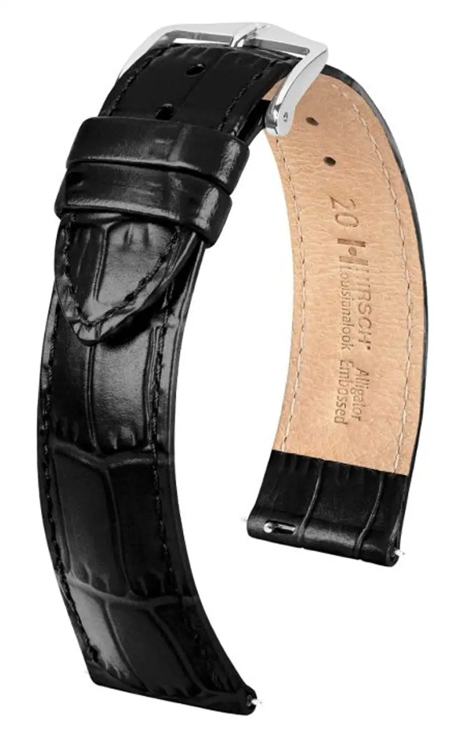 Pasek Hirsch Louisianalook czarny to elegancki i ponadczasowy dodatek do klasycznych zegarków. Wykonany ze skóry naturalnej z delikatnym połyskiem, wyróżnia się charakterystycznym tłoczeniem w stylu aligatora, które nadaje mu wyrafinowanego charakteru. Starannie wykończone krawędzie oraz przeszycie w kolorze paska podkreślają dbałość o detale.