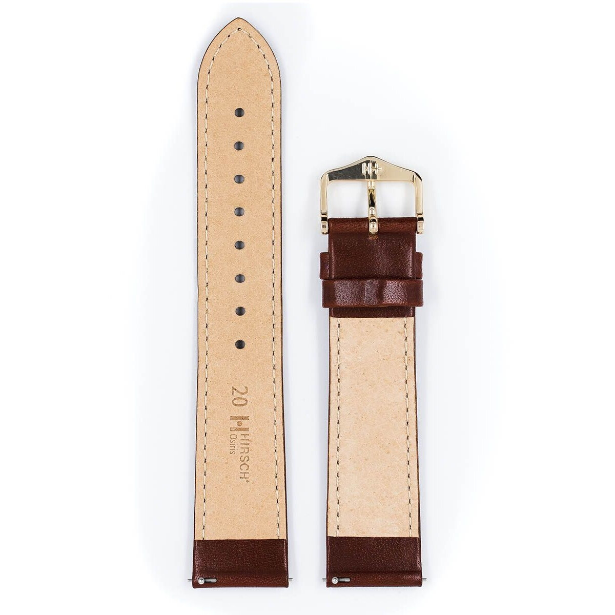 Hirsch Osiris pasek do zegarka w kolorze czekoladowym. Skóra tego paska jest walcowana ręcznie według włoskiej tradycji rzemieślniczej. W ten sposób otrzymuje ona wyjątkowy połysk, podkreślany płaskim wykonaniem i dyskretnym szwem. Przyjemnie miękki i aksamitny w dotyku dzięki skórze podszewkowej Hirsch Softglove. Idealnie pasuje do eleganckich, klasycznych zegarków. W Hirsch Osiris zastosowano teleskopy, które umożliwiają założenie paska do zegarka bez użycia narzędzi.