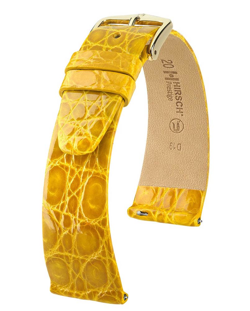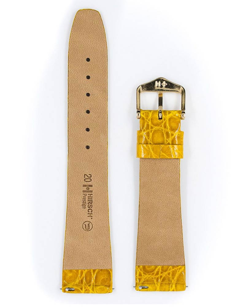 Szlachetny pasek do zegarka Hirsch Prestige, który będzie doskonale pasował do tradycyjnych, damskich i męskich zegarków. Poddawana ręcznej obróbce, głęboko barwiona w beczkach skóra z krokodyla kajman. Charakteryzuje się typową strukturą powierzchni w formie siatki złożonej z większych i mniejszych łusek. Caiman crocodilus to luksusowy gatunek materiału odznaczający się błyszczącym wykończeniem. Kajman pochodzi z terenów Południowej Ameryki, gdzie występuje na obszarze rozpościerającym się pomiędzy południowym Meksykiem a północną Argentyną. Idealna propozycja do prestiżowych, eleganckich zegarków. Zastosowanie specjalnych teleskopów pozwala na zamontowanie i ściągnięcie paska bez użycia narzędzi. Hirsch Prestige dostępny jest w rozmiarach 12 mm, 14 mm, 15 mm, 16 mm, 17 mm, 18 mm, 19 mm i 20 mm.