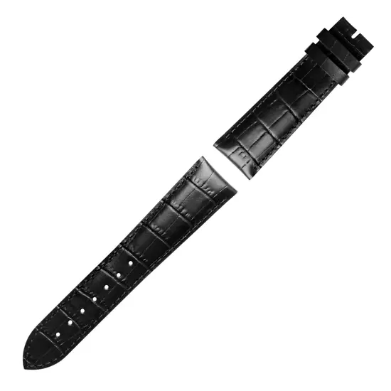 Pasek Longines DolceVita, czarny wykonany jest ze skóry naturalnej z wyraźnym wzorem aligatora. Czarna tonacja i dopasowane przeszycia podkreślają jego elegancki charakter, który idealnie współgra z zegarkami Longines z kolekcji DolceVita. Pasek dostępny jest w kilku szerokościach i pasuje również do innych modeli Longines, pod warunkiem zgodności szerokości montażu przy kopercie. Sprzedawany jest bez zapięcia – klamerkę lub zapięcie motylkowe Longines można dokupić osobno w sekcji „Warto dokupić”.