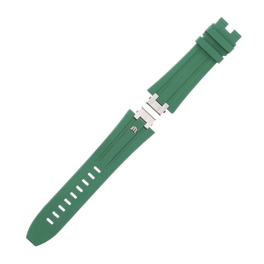 Oryginalny pasek bez klamerki do zegarka Maurice Lacroix Aikon Automatic o średnicy koperty 39 mm. Wykonany z wysokiej jakości gumy w kolorze zielonym. Ozdobne logo „M” w kolorze srebrnym, zintegrowane z paskiem nadaje poczucie spójności i luksusu. Pasek dedykowany jest tylko i wyłącznie do kolekcji Aikon Automatic, której to zegarki posiadają numer serwisowy na deklu, od spodu zegarka AI6007. Zastosowanie specjalnego mocowania, które ułatwia wymianę to prawdziwa wartość dodana do paska. Klamerkę można dokupić w dopasowanych produktach poniżej.