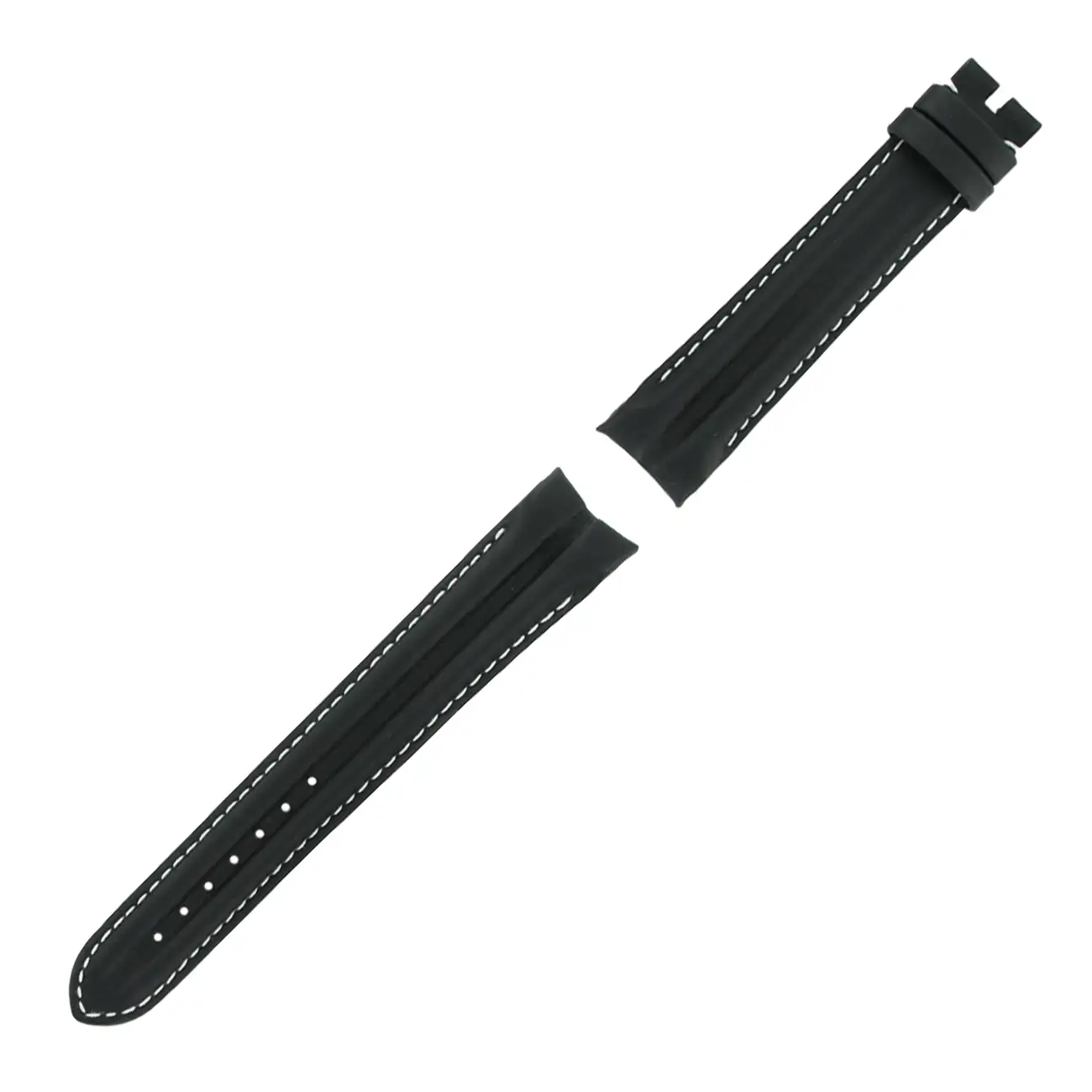Pasek Omega O97691064 to oryginalny pasek zaprojektowany z myślą o wybranych modelach zegarków z linii Omega Speedmaster. Wykonany z czarnej skóry naturalnej o sportowym charakterze, wyróżnia się wyraźnym podwójnym wybrzuszeniem, które biegnie wzdłuż całej długości paska i podkreśla jego dynamiczny styl. Kontrastująca biała nić dodaje lekkości i nowoczesnego akcentu.