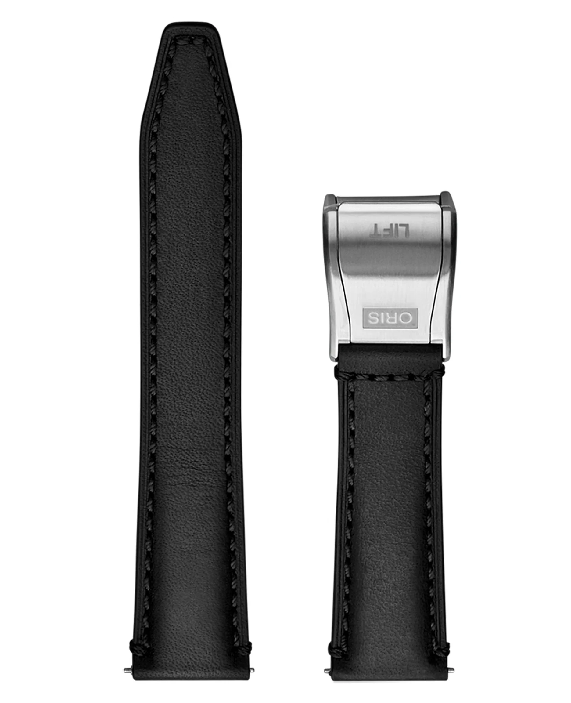 Oris 07 6 20 08NB oryginalny czarny pasek skórzany z przeszyciem w kolorze czarnym. Dedykowany do zegarków Big Crown ProPilot Date, sprzedawany bez zapięcia.