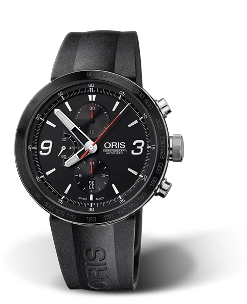 Oris 07 4 25 06NB oryginalny czarny pasek gumowy do modelu TT1 Chronograph. Sprzedawany bez zapięcia, w zestawie ze śrubami montażowymi.