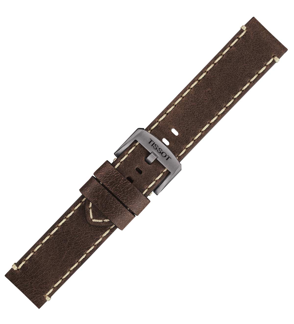 Oryginalny pasek do zegarka Tissot Chrono XL. Wykonany ze skóry naturalnej Tissot T600041404 w kolorze brązowym z białą nicią, która nadaje sportowy charakter każdemu zegarkowi. Idealnie komponuje się ze sportowymi zegarkami Tissot, do których można założyć pasek o szerokości 22 mm. Klamerka wykonana ze stali szlachetnej pokryta szarą powłoką PVD, wyraźny napis Tissot.
