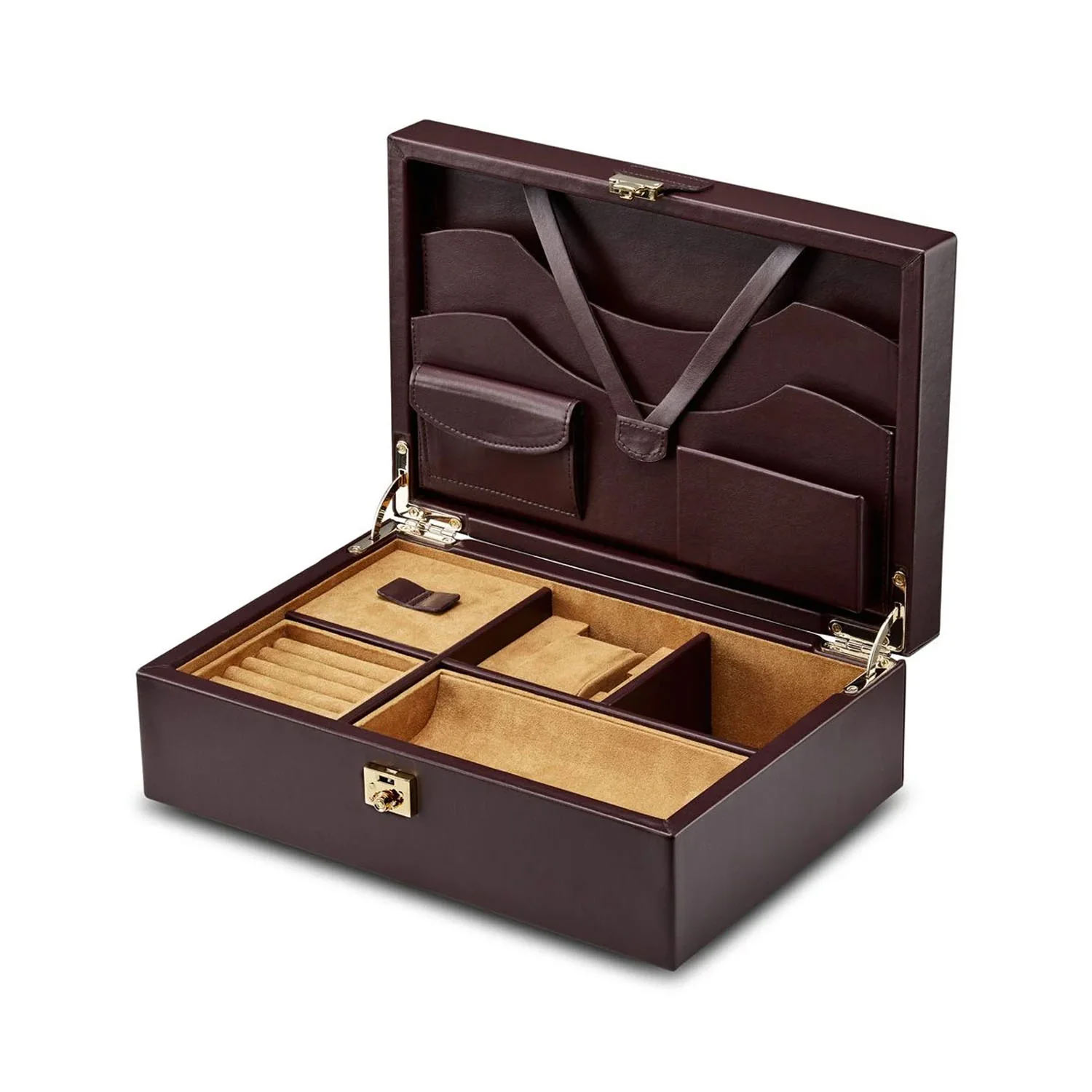 Limitowane pudełko WOLF 190206 to nie tylko elegancki design, ale praktyczny organizer. Pudełko WOLF ozdobione beżowymi akcentami z nubuku oraz złotym logiem "DP" zamykane jest na zamek z kluczem. Najważniejsze dodatki właściciela pudełka WOLF będą bezpieczne w podróży, biurze, jak i w domu. WOLF Philipp Lifestyle chwali się wieloma opcjami do przechowywania biżuterii oraz innych ważnych dodatków w bezpieczny sposób.