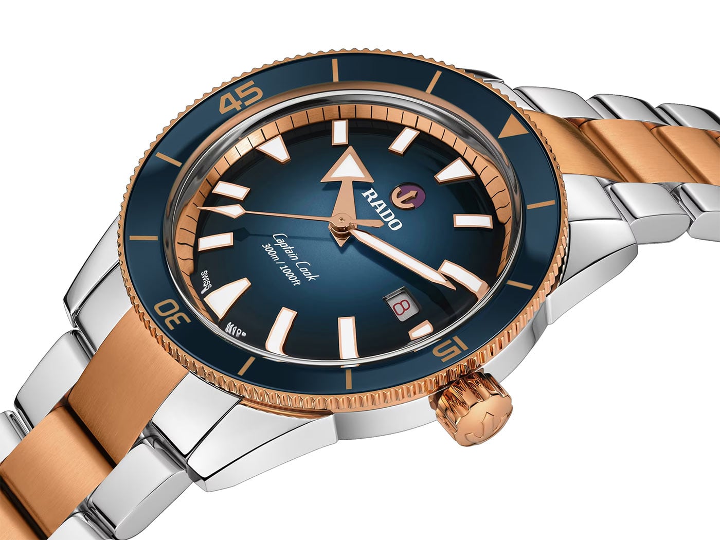 Zegarek męski vintage Rado Captain Cook Automatic R32137203 to znakomita propozycja skierowana przede wszystkim do współczesnych poszukiwaczy przygód i odkrywców z każdej dziedziny. Na nowo zinterpretowany klasyk — kultowy zegarek nurkowy Rado Captain Cook, który zachowuje ponadczasowe detale, lecz dodaje do nich nowoczesną jakość i trwałość. Wyposażony w niezawodny, szwajcarski mechanizm automatyczny zapewnia aż około 80-godzinną rezerwę chodu. Powyższy model jednak jest wyjątkowy nawet wśród swych wariantów... Powodem, dla którego tak się dzieje, jest gradientowa, niebiesko-czarna tarcza. Dzięki niej ten zegarek idealnie nadaje się na prezent na walentynki dla niego, ale nie tylko.