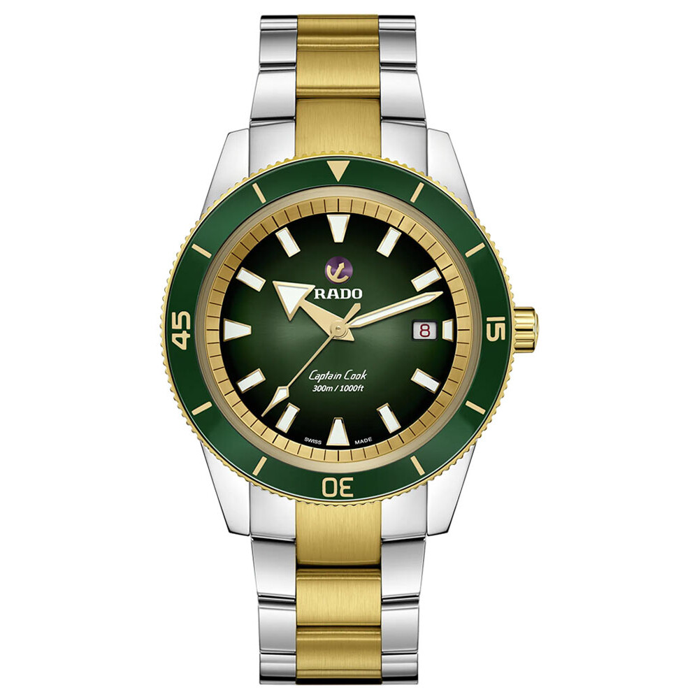 Zegarek męski vintage Rado Captain Cook Automatic R32138303 to znakomita propozycja skierowana przede wszystkim do współczesnych poszukiwaczy przygód i odkrywców z każdej dziedziny. Na nowo zinterpretowany klasyk — kultowy zegarek nurkowy Rado Captain Cook, który zachowuje ponadczasowe detale, lecz dodaje do nich nowoczesną jakość i trwałość. Wyposażony w niezawodny, szwajcarski mechanizm automatyczny zapewnia aż około 80-godzinną rezerwę chodu. Powyższy model jednak jest wyjątkowy nawet wśród swych wariantów... Powodem, dla którego tak się dzieje, jest gradientowa, zielono-czarna tarcza. Dzięki niej ten zegarek idealnie nadaje się na prezent na walentynki dla niego, ale nie tylko.