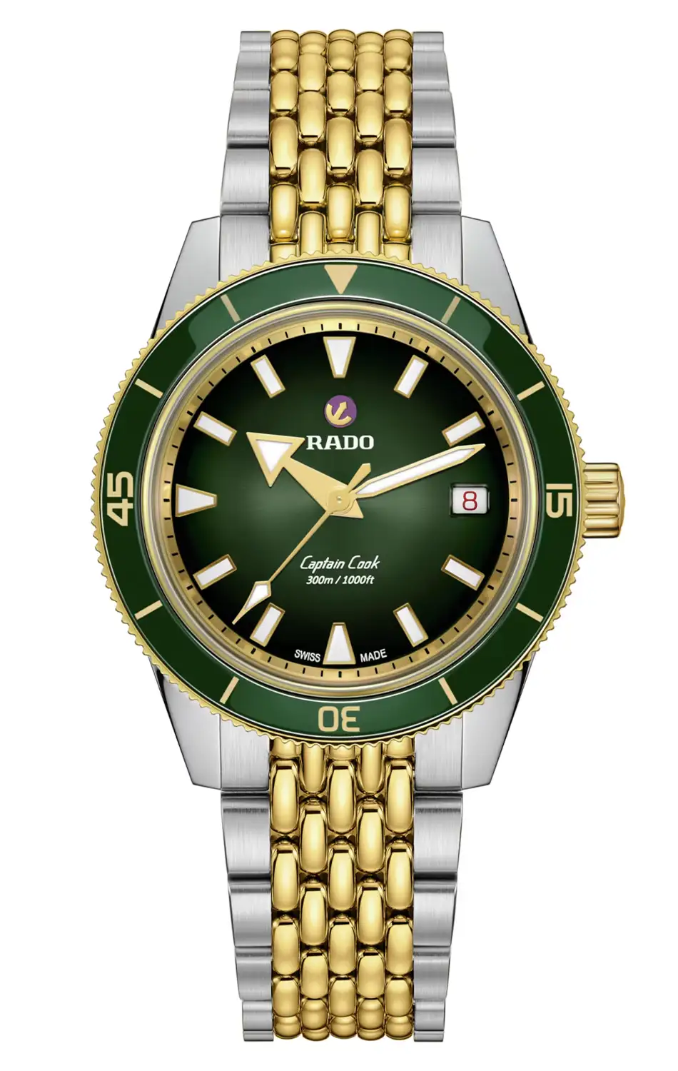 Gradientowa tarcza Rado przechodzi od czerni po głęboką zieleń, budując wrażenie głębi, która zmienia się z kątem padania światła. Rodowane wskazówki i indeksy pokryto masą Super-LumiNova®, zapewniającą czytelność również pod wodą, a kultowa kotwica Rado umieszczona na rubinowej płytce nadaje projektowi prestiżu i tożsamości marki. Wewnątrz pracuje automatyczny mechanizm Rado R763 z antymagnetyczną sprężyną Nivachron™, pięcioma pozycjami regulacji i imponującą 80-godzinną rezerwą chodu — stworzony z myślą o bezkompromisowej precyzji. Ten czasomierz nie musi niczego udowadniać – został zaprojektowany z myślą o tych, którzy wiedzą, czego chcą. Nurkowy zegarek Rado Diver R32225313 na bransolecie to nie tylko narzędzie do odmierzania czasu — to wyraz niezależności, stylu i gotowości na wszystko.