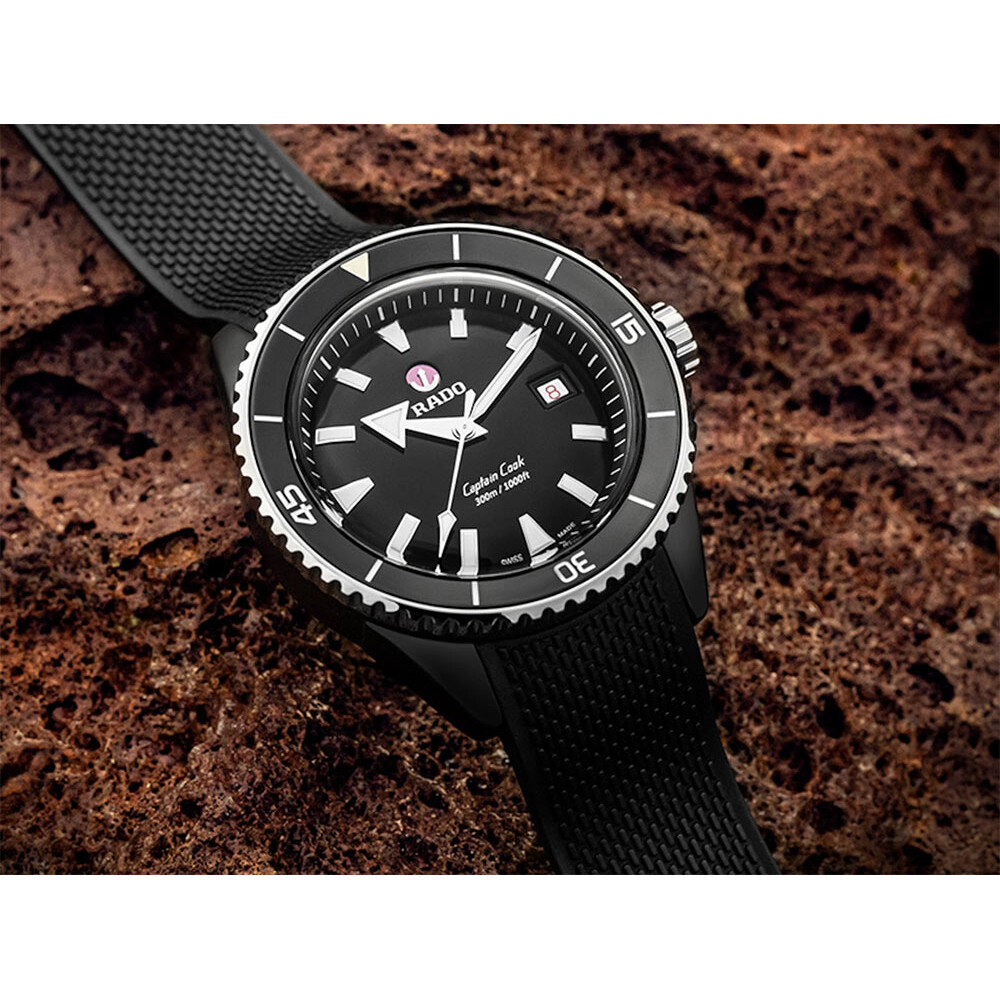 Rado HyperChrome Captain Cook Diver zawsze stanie na wysokości zadania, zarówno w dziczy, jak i w wodzie. W świecie przepełnionym wyzwaniami, nieokiełznanymi żywiołami oraz wszelkiego rodzaju przeszkodami ci, którzy potrafią się przystosować, będą mieć o wiele większe szanse na przetrwanie. DNA marki Rado wpisuje się w ten odgórny schemat, a nowy zegarek Captain Cook High-Tech Ceramic Diver idealnie go urzeczywistnia.