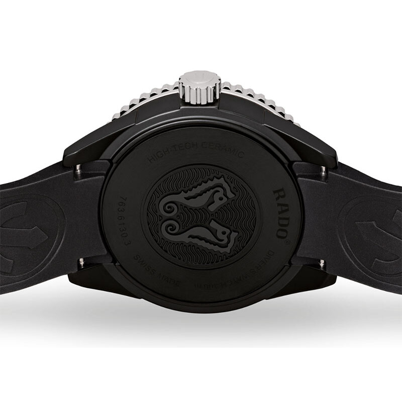 Nurkowy zegarek z certyfikatem ISO 6425 Rado Diver R32129158 jest wodoszczelny do głębokości 300 metrów/30 barów. Wskazania i indeksy są wypełnione powłoką SuperLuminova®, która sprawia, że doskonale wyróżniają się na głębokim tle tworzonym przez czarną tarczę o lakierowanym i polerowanym wykończeniu. Jednoczęściowa koperta (konstrukcja monobloc) o średnicy 43 mm jest wykonana z matowej ceramiki high-tech w kolorze czarnym, a obracający się pierścień z hartowanej stali szlachetnej o błyszczącym wykończeniu. Mechanizm automatyczny Rado R763 oferuje więcej niż standardowe wymogi testów precyzji o pięć pełnych punktów i gwarantuje 80-godzinną rezerwę chodu. Powyższy zegarek męski typu diver Rado jest dostarczany wraz z czarnym paskiem gumowym z zapięciem motylkowym. Niezależnie od tego, co zamierzasz odkrywać, zegarek Rado Captain Cook High-Tech Ceramic Diver stanie się Twym niezawodnym i sprawdzonym kompanem na wiele przyszłych lat.