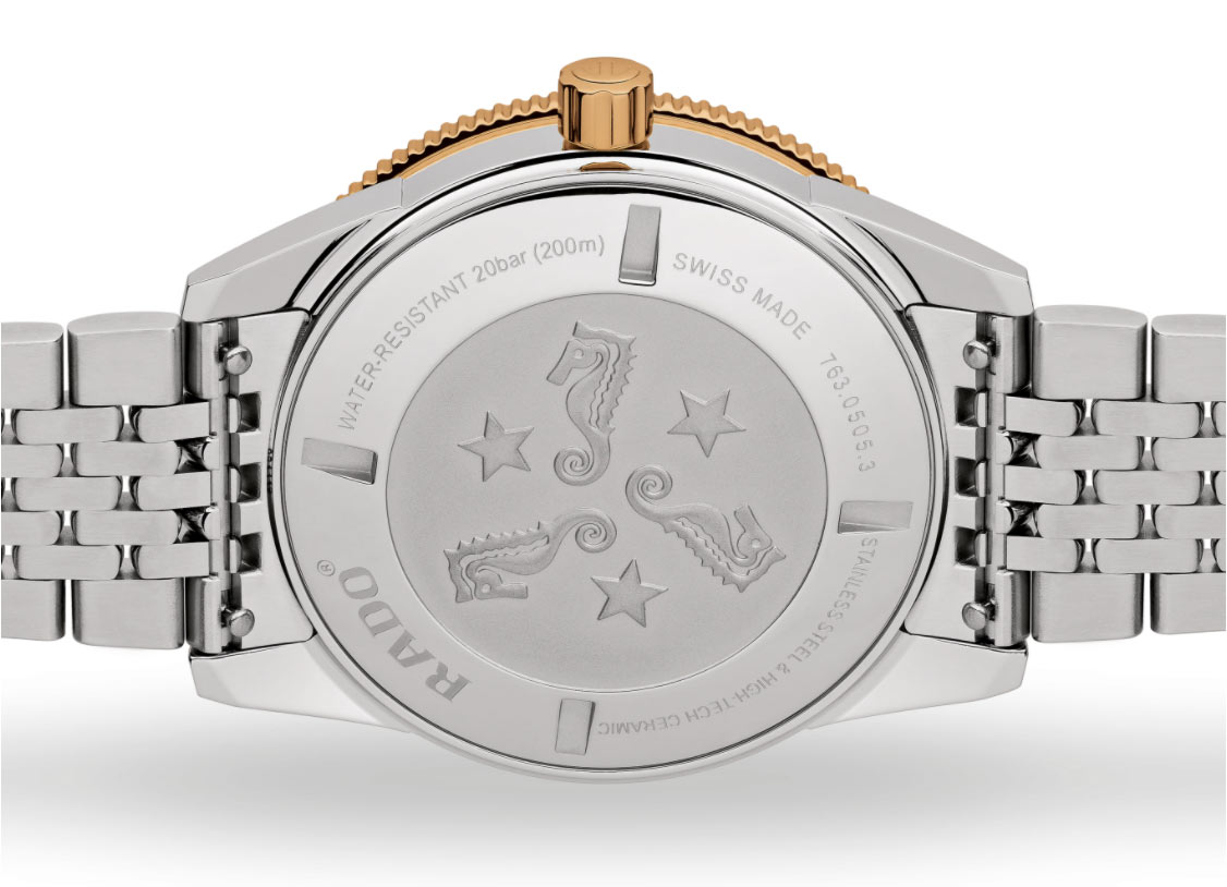 Kultową tarczę z ponadwymiarowymi indeksami i wskazówkami świecącymi w ciemności oraz z datownikiem złożonym z białego tła i czerwonej cyfry zabezpiecza odporne na zarysowania, antyrefleksyjne szkło szafirowe o krzywiźnie typu bubble. Dzięki niej cała tarcza przypomina bańkę, dostarczając niepowtarzalnego designu w klimacie retro. Innymi, wyjątkowymi cechami tego retro zegarka interpretującego słynnego divera, są kolorystyka, materiał bezela i forma wykończenia. Perfekcyjne szczotkowanie zewnętrznych ogniw bransolety o niepospolitej konstrukcji sprzyja nowoczesnej, narzędziowej stylistyce. Błyszczące elementy pokryte żółtym złotem oraz czarna tarcza i bezel z ceramiki high-tech dopełniają ją jednak komponentami wprowadzającymi nastrój z lat 60. Wszystkie te elementy łączą się, aby nadać zegarkowi niepowtarzalną estetykę retro. Wysokiej jakości szwajcarski mechanizm automatyczny ETA C07.611 z przedłużoną rezerwą chodu do 80 godzin stanowi kolejny wyznacznik jakości premium.