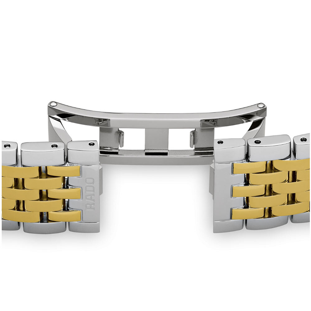 Ten reinterpretowany model o rozmiarze 38 milimetrów cechuje dodatkowo smukły profil i taliowana bransoleta złożona z siedmiu rzędów w tym pokrytych żółtym złotem. Oferuje ona wysoką elastyczność i wysoki komfort noszenia dzięki innowacyjnej koncepcji uszu i konstrukcji stworzonej z wielu komponentów. Czasomierz pozwoli w sobie odszukać także liczne, nowe elementy wzornictwa, które również zachwycą wykwintnym stylem wykończenia. Lakierowana, czarna tarcza z efektem metalicznym wspaniale komponuje się z wypolerowanym, stalowym pierścieniem o fazowanych i metalizowanych na czarno krawędziach, które od góry skrywają się pod delikatnie wypukłym szkłem szafirowym. Rodowane wskazania płyną między indeksami 3/6/9/12 i czterema, szlifowanymi brylantami. Ich jakość i blask podkreśla oraz czci powracające słynne logo Jubilé na tarczy. Przedtem stosowane je, aby oddzielić zegarki udekorowane prawdziwymi brylantami najwyższej klasy od tych, które wysadzano kamieniami syntetycznymi. Dziś to drukowane logo w srebrzystym odcieniu stanowi elegancki ukłon w stronę nieprzerwanej sympatii marki do standardu premium tak materiałów, jak i designu. Zegarek wyposażony jest w mechanizm kwarcowy Rado R073 z technologiami PreciDrive i HeavyDrive, które gwarantują wyższą precyzję i odporność na wstrząsy.