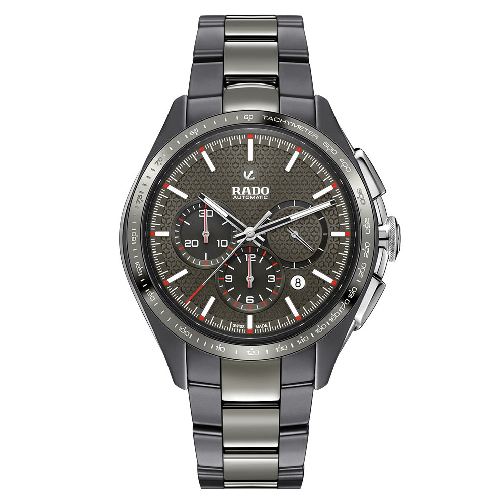 Ceramiczna koperta monobloc w rozmiarze 45 mm wykonana techniką wtryskiwania oferuje nie tylko wyjątkową lekkość, ale także niebywałą odporność na zarysowania. Front koperty to ceramiczny pierścień z wygrawerowaną skalą tachymetru, który dodaje zegarkowi zarówno sportowego charakteru, jak i elegancji. Bransoleta z tego samego materiału zapewnia doskonałe dopasowanie i najwyższy komfort w czasie noszenia. Po prawej stronie zainstalowana została wygodna w obsłudze koronka z wytłoczonym logo marki Rado w postaci kotwicy. Rewers zaś to zakręcany czterema solidnymi śrubami transparentny dekiel. Wnętrze tego wyjątkowego zegarka wypełnia automatyczny mechanizm kaliber R650 z rezerwę chodu do 47 godzin. Napędzany ruchem nadgarstka werk gwarantuje doskonałą precyzję w każdych warunkach.