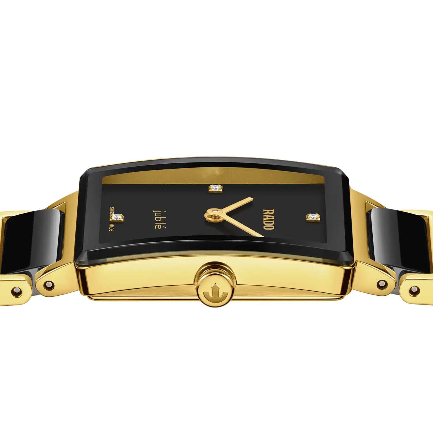 Bransoleta łączy pozłacaną stal w kolorze złota z czarnymi ogniwami ceramicznymi, charakterystycznymi dla Rado i cenionymi za odporność na zarysowania oraz wyjątkową gładkość w kontakcie ze skórą. Dzięki temu zegarek pozostaje nie tylko piękny, ale i niezwykle komfortowy w codziennym noszeniu. Rado Integral Jubile to elegancki akcent, który sprawdza się zarówno jako biżuteryjny dodatek do wieczorowej stylizacji, jak i dyskretny symbol luksusu noszony każdego dnia.