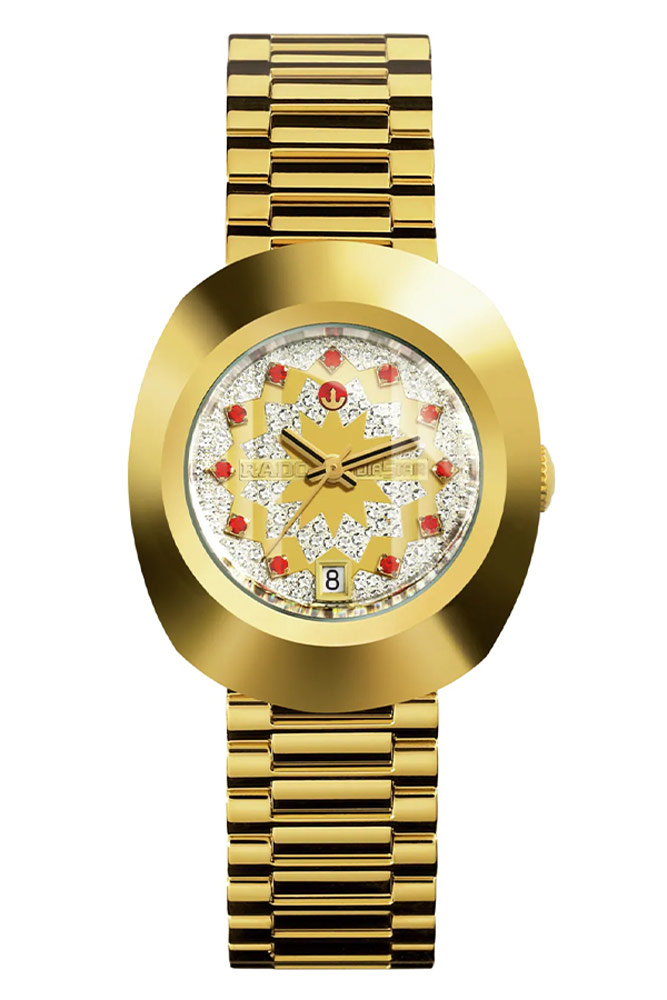 W 1962 roku marka Rado zrewolucjonizowała zegarmistrzostwo, wprowadzając odporny na zarysowania model DiaStar. Rado przedstawia piękny zegarek damski z kolekcji Lady Automatic. Zegarek R12416073 to wyjątkowa koperta tonneau wykonana z hardmetalu. Materiał ten jest niezwykle twardy, twardszy od stali, złota czy platyny. Koperta jest w kolorze złotym. Do obudowy przymocowana została stalowa bransoletka z zapięciem motylkowym. Czasomierz Rado R12416073 charakteryzuje się ponadczasowym stylem pierwszych modeli DiaStar. Pod szkłem szafirowym niezwykle trudnym do zarysowania znajduje się piękna wielokolorowa zdobiona kryształkami tarcza. Wyraźne duże wskazówki wskażą aktualną godzinę a datownik umieszczony na godzinie szóstej aktualny dzień miesiąca. Tarcza jest świetnie ozdobiona i cieszyć będzie oko każdej użytkowniczki.
