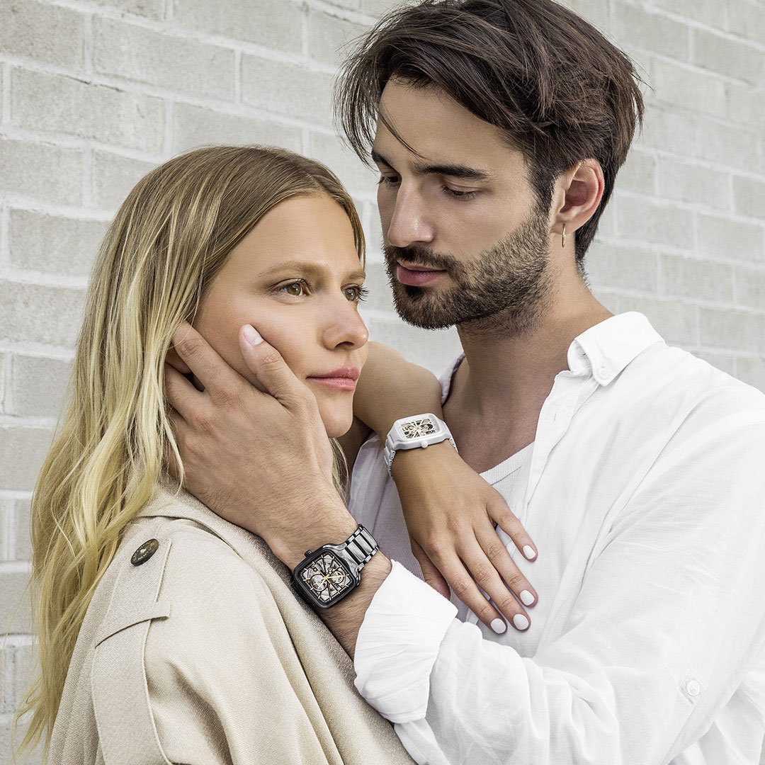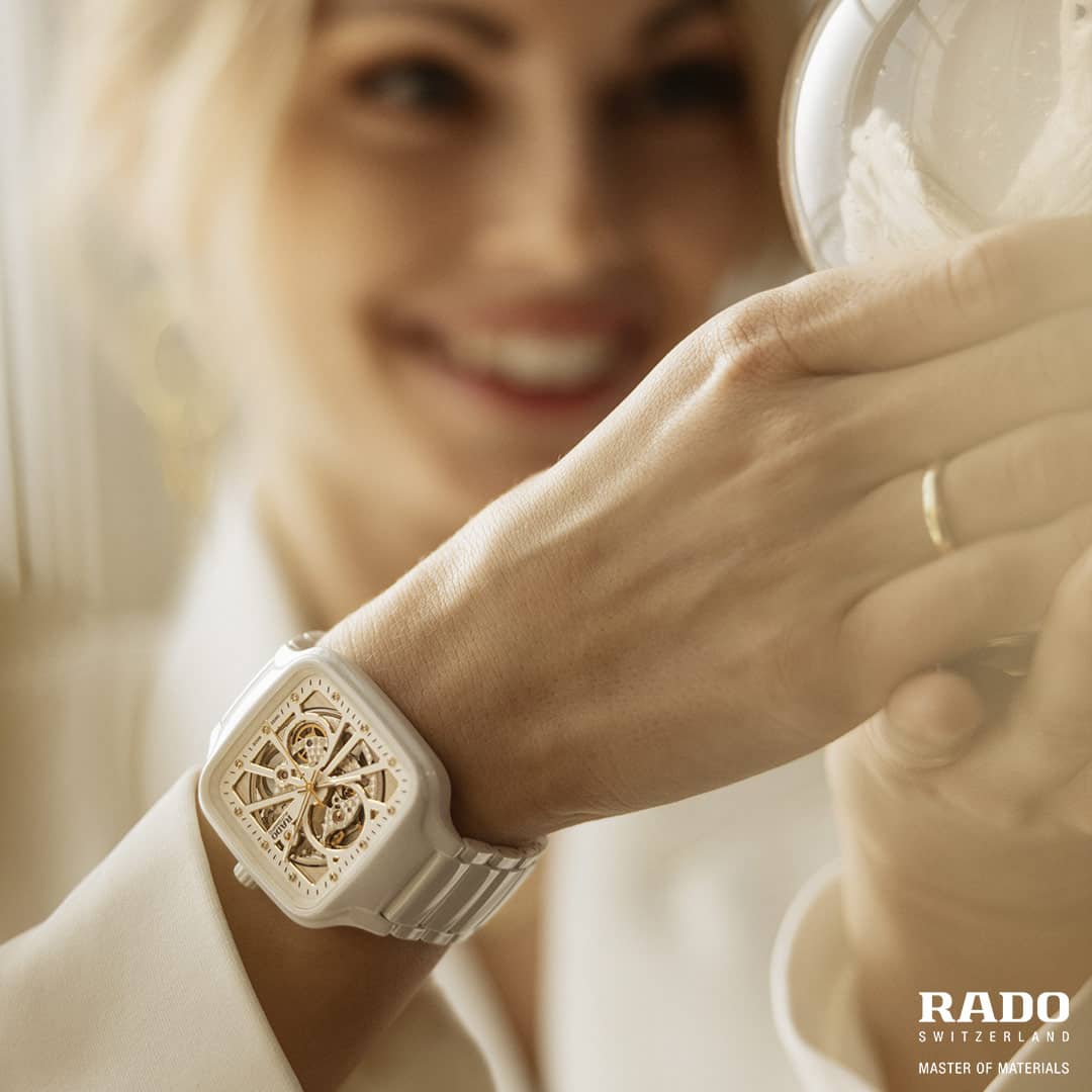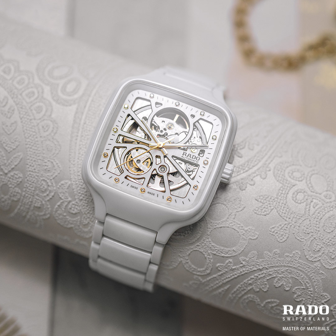 Marka RADO słynie z innowacyjnych koncepcji wzorniczych, w tym wykorzystania kwadratowych kopert i ceramiki high-tech. Jej zegarki są wielokrotnie nagradzane za design i pionierskie podejście do materiałów. Rado True Square Automatic Open Heart to połączenie elegancji, luksusu i nowoczesności. Tarcza typu "Skeleton" ukazuje mechanizm z otwartym oknem balansu, co dodaje mu wyjątkowego uroku. Diamenty na tarczy pełniące rolę oznaczeń godzin, podkreślają i przypominają jednocześnie, że model ten należy do prestiżowego segmentu dóbr luksusowych.