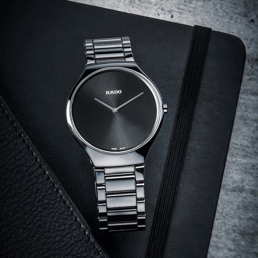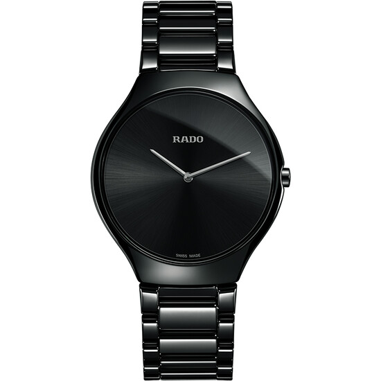 Najcieńszy zegarek świata wykonany z zaawansowanej technologicznie ceramiki. Grubość koperty zaledwie 5 milimetrów. Rado True Thinline wyznacza nowe standardy lekkości i komfortu, stając się jednocześnie najcieńszym zegarkiem ceramicznym świata. Szwajcarscy pionierzy nowoczesnego zegarmistrzostwa, znani z wykorzystania nietypowych, zaawansowanych technologicznie materiałów, by stworzyć to dzieło technologii graniczącej ze sztuką, pokonali niejedną granicę możliwości. Rado True Thinline L Quartz łączy w sobie cechy znakomitej wytrzymałości i niespotykanej dotąd wygody użytkowania.
