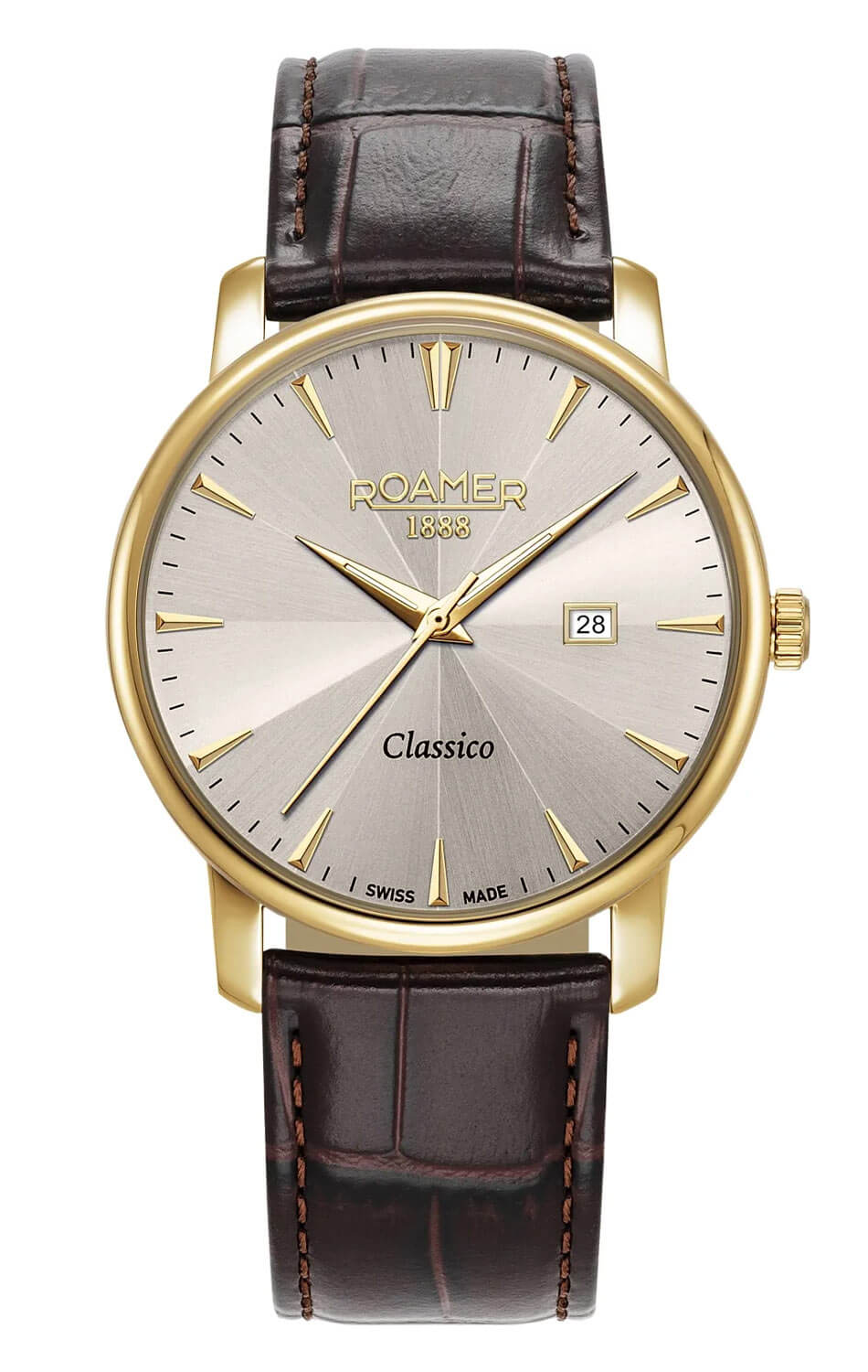 Pozłacany zegarek męski Roamer Classico Gents 971856 48 55 05 to kwintesencja klasycznej elegancji, zamknięta w prostej, ponadczasowej formie. Minimalistyczna szara tarcza z pozłacanymi wskazówkami w parze indeksami przywołuje ducha tradycyjnego zegarmistrzostwa, a smukła koperta w rozmiarze 40 mm ze stali szlachetnej w kolorze złotym IP w połączeniu z brązowym paskiem z naturalnej skóry sprawia, że model ten doskonale wpisuje się w styl smart classic – dyskretny, ale zauważalny. To czasomierz dla mężczyzny, który nie potrzebuje ekstrawagancji, by wyrazić pewność siebie. Wybór świadomy, elegancki, lojalny wobec tradycji, ale gotowy na codzienność współczesnego świata.