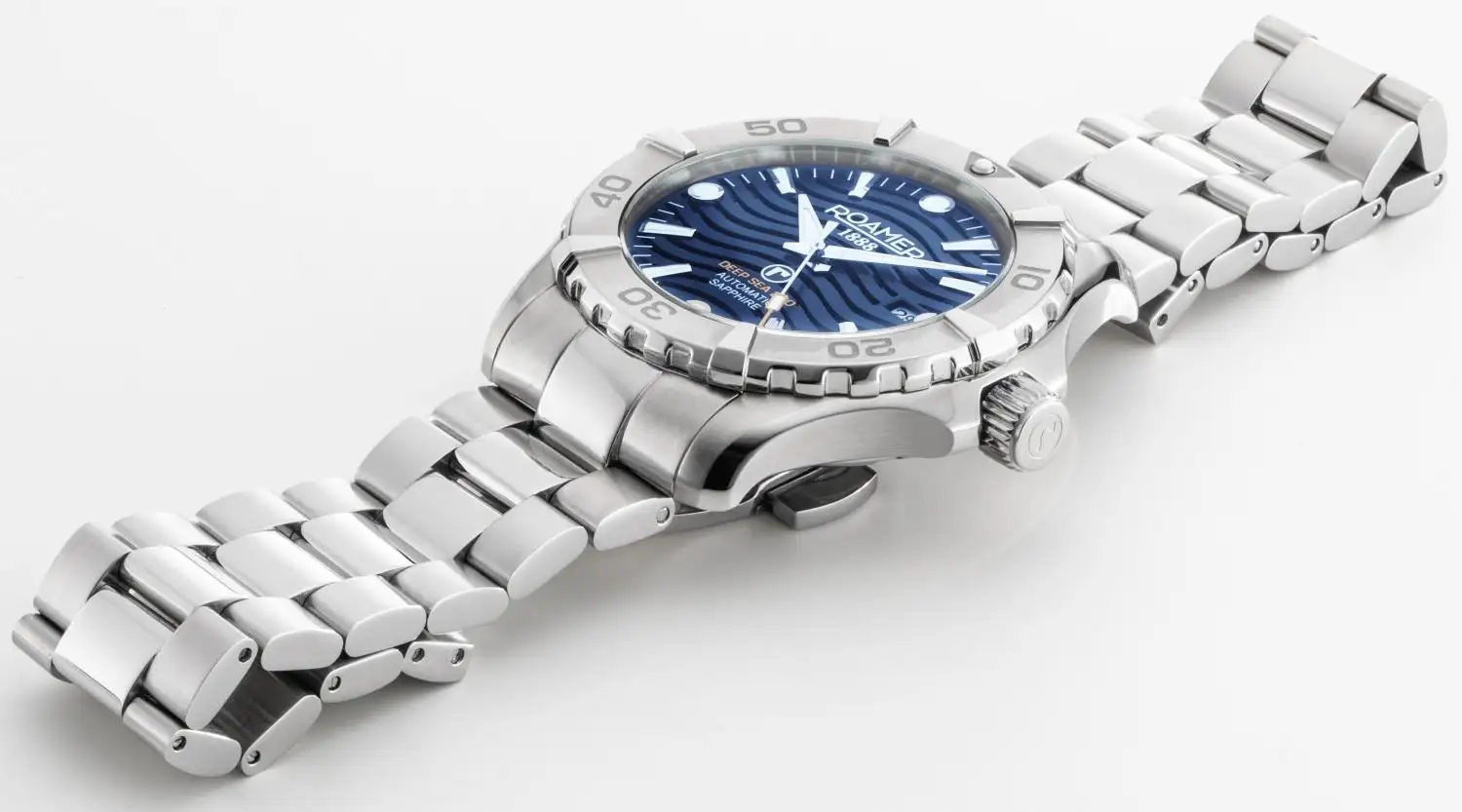Pod wodą Roamer sprawdza się jako prawdziwy instrument nurkowy – zapewnia wodoszczelność do 200 metrów i został wyposażony w jednokierunkowy bezel do odmierzania czasu zanurzenia. Indeksy i wskazówki pokryto silnie świecącą powłoką luminescencyjną, co umożliwia bezproblemowy odczyt nawet w mętnej toni. Gwintowana koronka i masywna konstrukcja zwiększają bezpieczeństwo podczas użytkowania w warunkach podwyższonego ciśnienia.