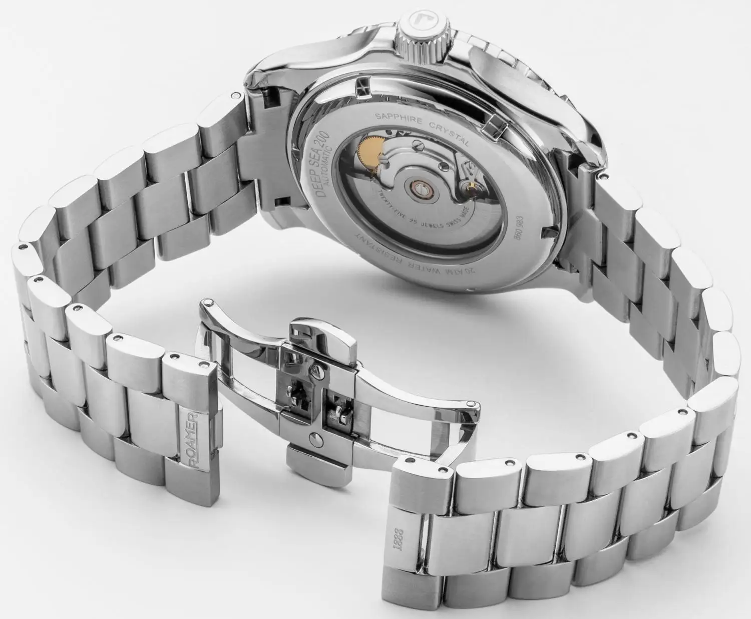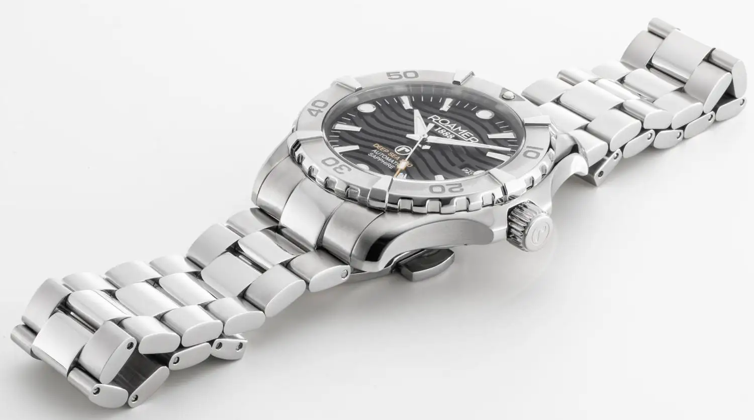 Pod wodą Roamer sprawdza się jako prawdziwy instrument nurkowy – zapewnia wodoszczelność do 200 metrów i został wyposażony w jednokierunkowy bezel do odmierzania czasu zanurzenia. Indeksy i wskazówki pokryto silnie świecącą powłoką luminescencyjną, co umożliwia bezproblemowy odczyt nawet w mętnej toni. Gwintowana koronka i masywna konstrukcja zwiększają bezpieczeństwo podczas użytkowania w warunkach podwyższonego ciśnienia.