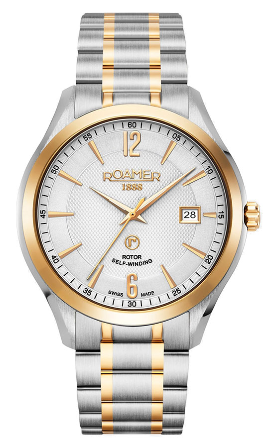 Zegarek męski Roamer Mechaline Pro 953660 47 14 90 umieszczony w wytrzymałej obudowie z wysokogatunkowej stali nierdzewnej w wersji bicolor IP. Giloszowana tarcza zabezpieczona najwyższej jakości szkłem szafirowym. Model napędzany wysoce dokładnym i niezawodnym mechanizmem automatycznym Swiss Made.