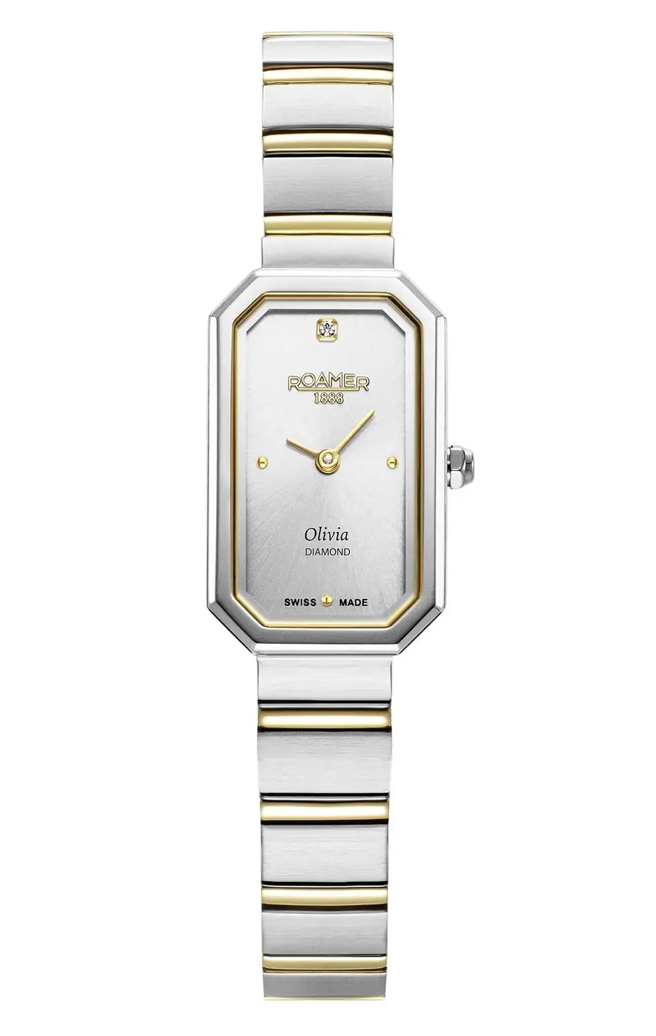 Zegarek damski z diamentem Roamer Olivia Diamond 627845 47 19 20 to propozycja w wersji bicolor dla Pań, które cenią precyzję formy i świadomą elegancję zamkniętą w delikatnych proporcjach. Prostokątna koperta o wymiarach 18 mm x 29 mm, geometryczne linie i minimalistyczna tarcza Roamer z diamentem tworzą kompozycję, która nie potrzebuje dodatków, by przyciągać spojrzenia - wystarczy subtelny błysk światła, by wydobyć z niej pełnię charakteru.