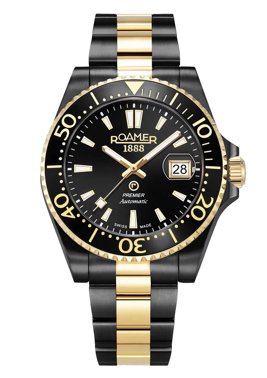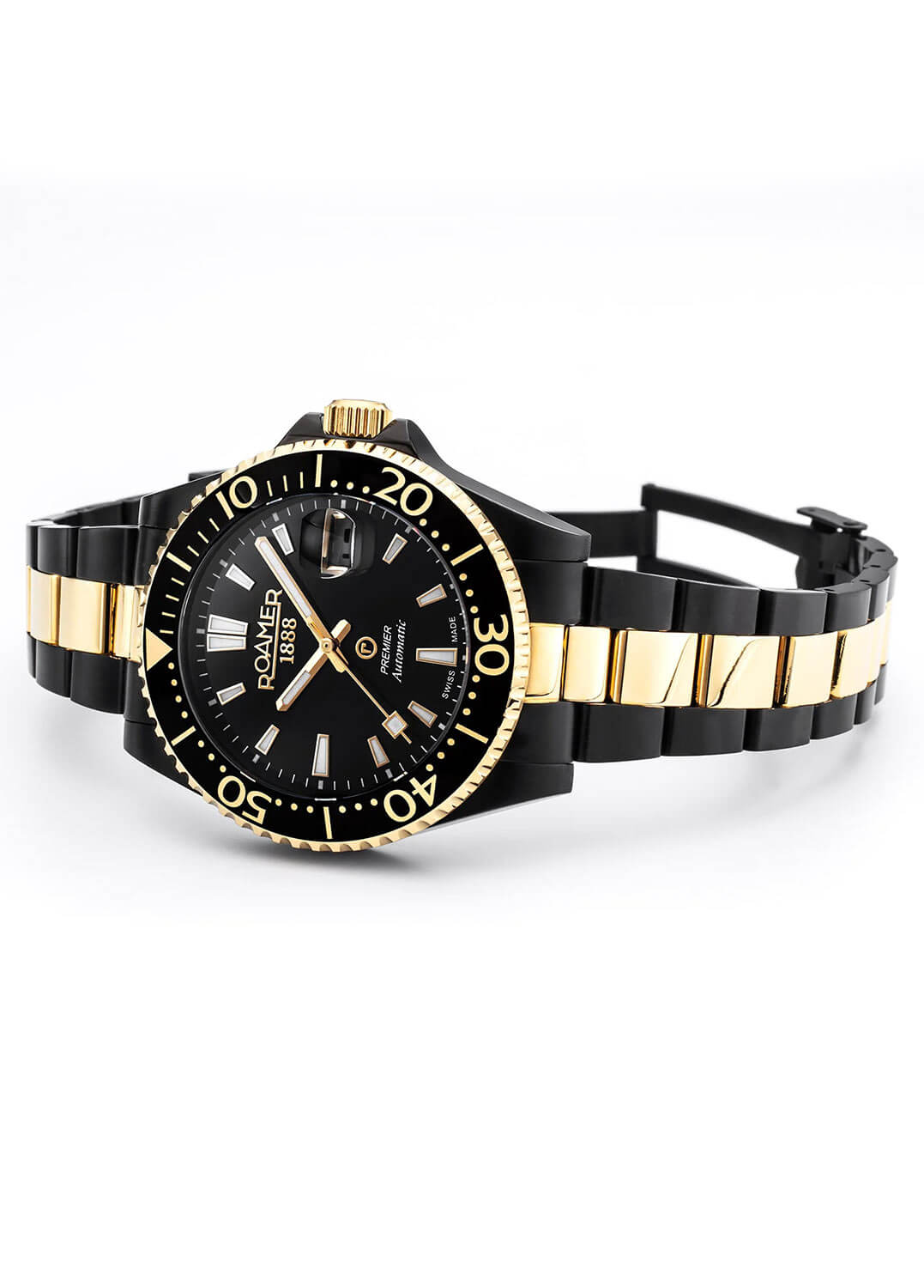 Męski zegarek Roamer Premier 986983 45 85 20 to stylowy i funkcjonalny czasomierz stworzony z myślą o mężczyznach, którzy cenią elegancję i wytrzymałość. Łączy w sobie nowoczesny design i sportowy charakter, oferując nie tylko doskonały wygląd, ale również wysoką jakość wykonania i niezawodność. Z czarno-złotą kolorystyką oraz trwałą konstrukcją, szwajcarski czasomierz Roamer Premier jest idealnym wyborem na każdą okazję – zarówno na co dzień, jak i podczas podwodnych przygód.