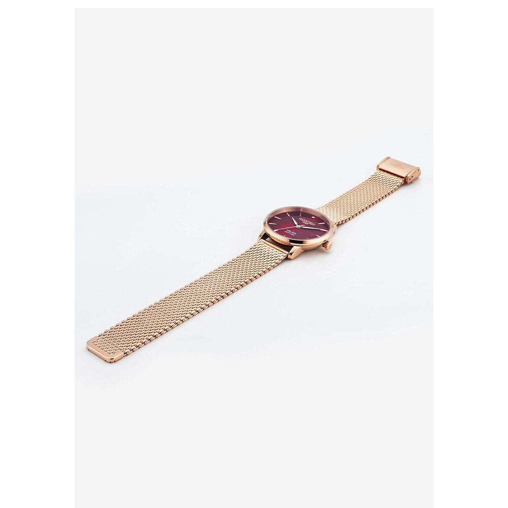 Zegarek damski Roamer Valais Diamond 989847 46 60 05 to klasyczny dodatek dla Pań, które cenią elegancki wygląd w odniesieniu od stylu tradycyjnego oraz wysoką jakość w korzystnej cenie. Powyższy model z kolekcji Valais, to zegarek z niepowtarzalną perłową tarczą w kolorze czerwonym ozdobioną pięknym, prawdziwym diamentem. Obudowany w kopertę z wysokogatunkowej stali nierdzewnej w różowo-złotym kolorze oraz zawieszony na bransolecie stalowej mesh. W zestawie znajduje się dodatkowy skórzany pasek w kolorze czerwonym. Ułatwi to dopasowanie czasomierza do własnego stylu.