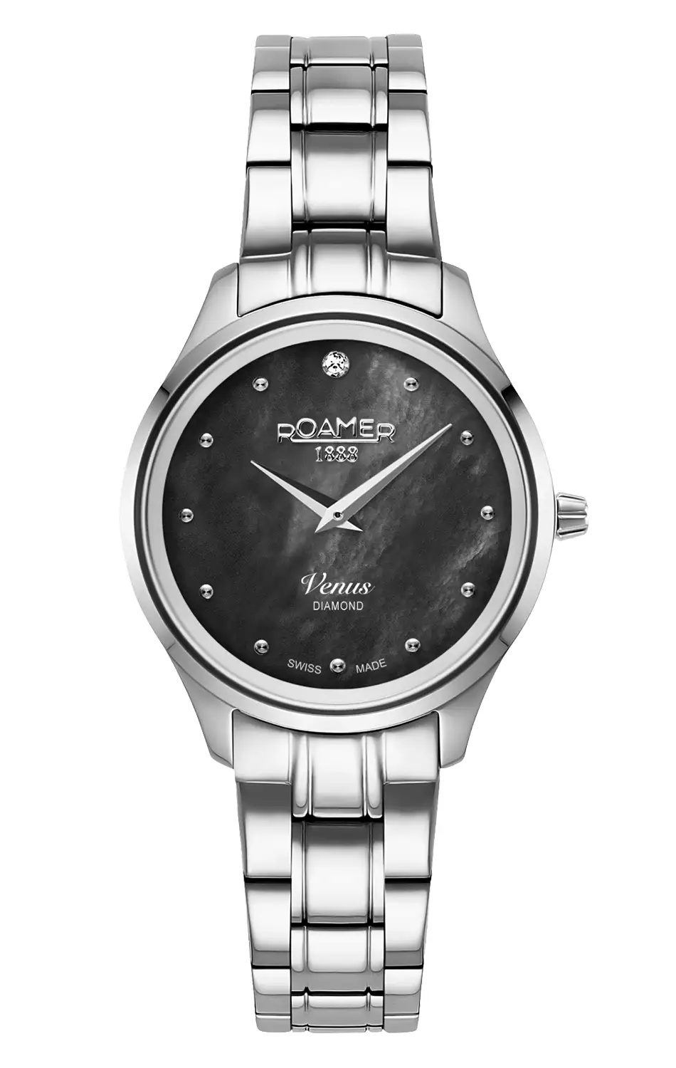 Elegancki zegarek damski Roamer Venus Diamond w stylu biżuteryjnym. Zmysłowa masa perłowa i naturalny diament na godzinie dwunastej. Znakomita, szwajcarska jakość w przystępnej cenie.