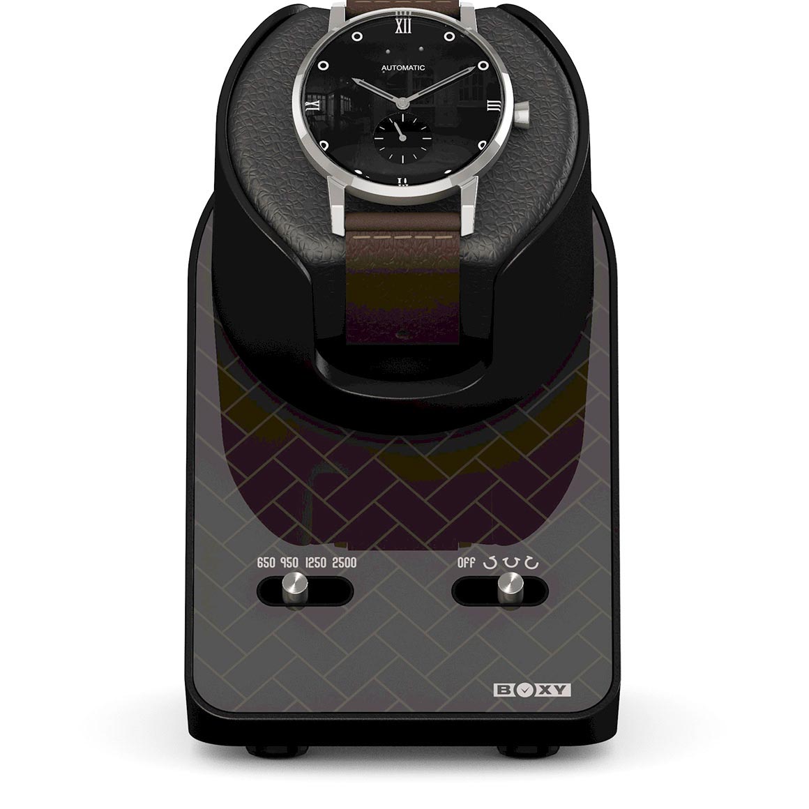 Rotomat Beco Boxy BLDC Nightstand Skyline Shadow 309133 urządzenie do nakręcania zegarka z mechanizmem automatycznym. Nowoczesny kształt i kompaktowe wymiary sprawiają, że mona go postawić np. na szafce nocnej lub innym meblu. Prosty w obsłudze, posiada dwa przełączniki: pierwszy do ilości obrotów, a drugi do kierunków obrotów.