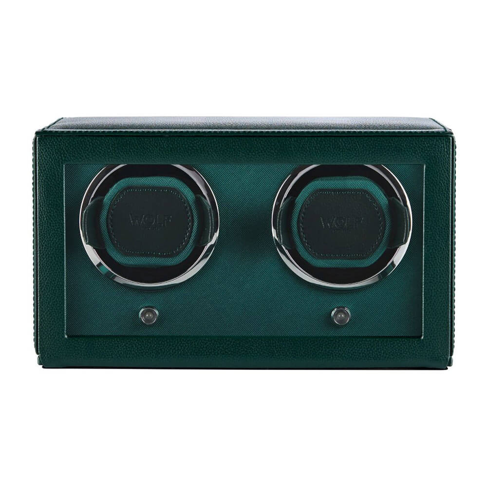 Rotomat WOLF Double Cub 461241 w odcieniu głębokiej zieleni to nie tylko funkcjonalne akcesorium, ale stylowy dodatek do każdej kolekcji zegarków automatycznych. Zaprojektowany z myślą o dwóch czasomierzach, łączy w sobie precyzję działania z eleganckim, wyrazistym wyglądem. Jego konstrukcja opiera się na renomowanym mechanizmie WOLF z opatentowanym licznikiem obrotów, który zapewnia dokładne utrzymanie rezerwy chodu bez nadmiernego naciągania sprężyny. Każde z dwóch gniazd działa niezależnie, umożliwiając użytkownikowi dostosowanie trybu pracy i kierunku obrotów dla każdego zegarka z osobna.