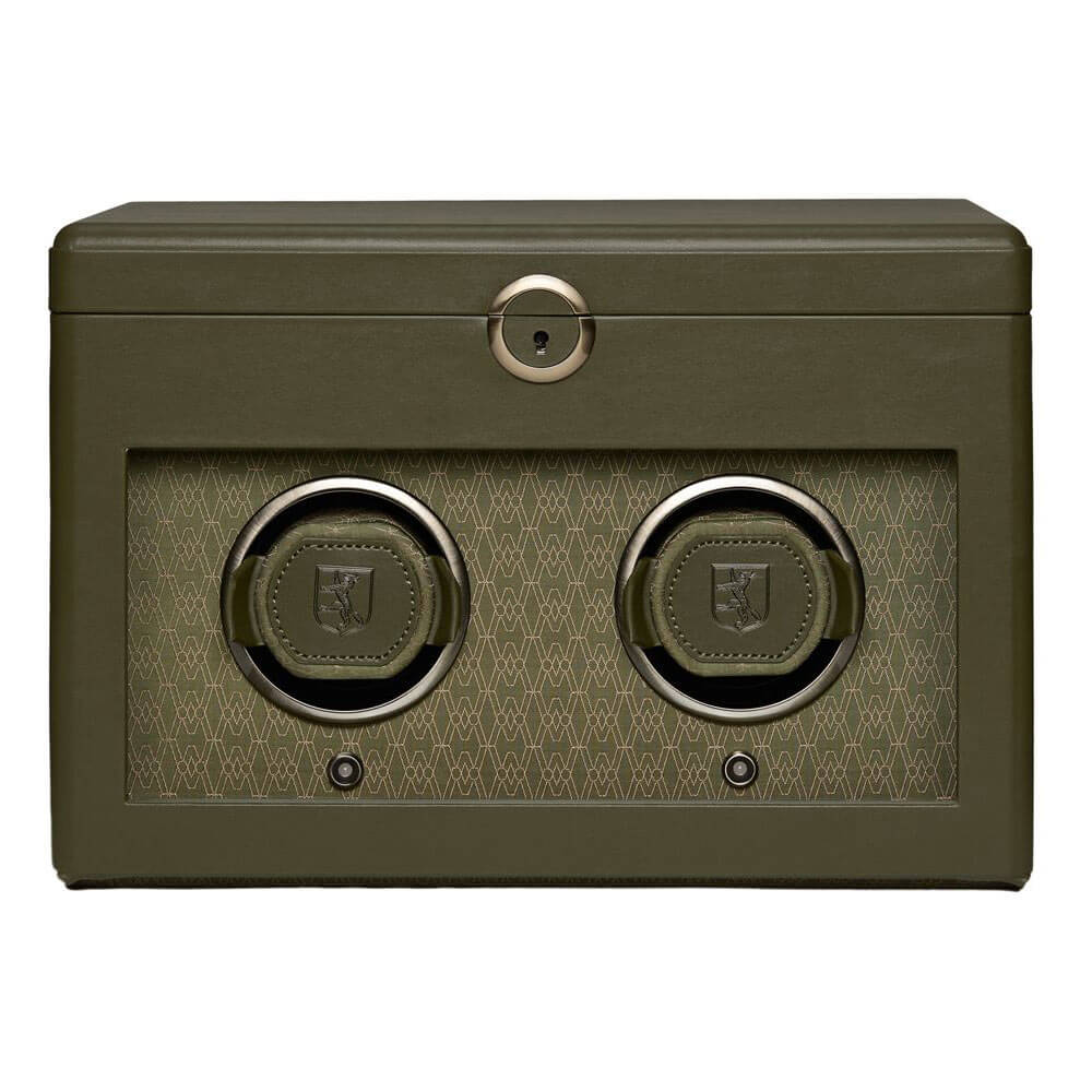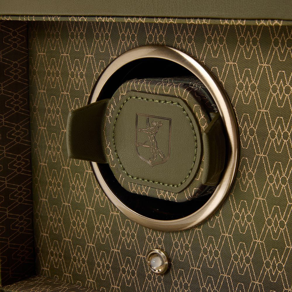 Rotomat WOLF Double Earth Limited Edition 190441 to prawdziwy majstersztyk w świecie akcesoriów dla miłośników zegarków automatycznych, łączący najwyższą jakość wykonania z troską o środowisko. W ramach kolekcji stworzonej na 190-lecie marki, ten ekskluzywny model zachwyca nowatorskim wzornictwem i elegancką kolorystyką. Ekologiczna skóra jabłkowa, wykorzystana do stworzenia zewnętrznej powłoki, jest nie tylko wytrzymała, ale również symbolizuje zrównoważone podejście do luksusu. Matowe, metaliczne detale i subtelne ramki dodają mu wyjątkowego charakteru. Wnętrze urządzenia wykończone jest satynowym żakardem z recyklingu, ozdobionym charakterystycznym wzorem marki WOLF, co podkreśla dbałość o każdy szczegół. Dzięki przestronnym przegródkom i zawieszonym poduszkom możesz przechowywać zegarki w idealnych warunkach, bez obaw o zarysowania czy luźne ułożenie.