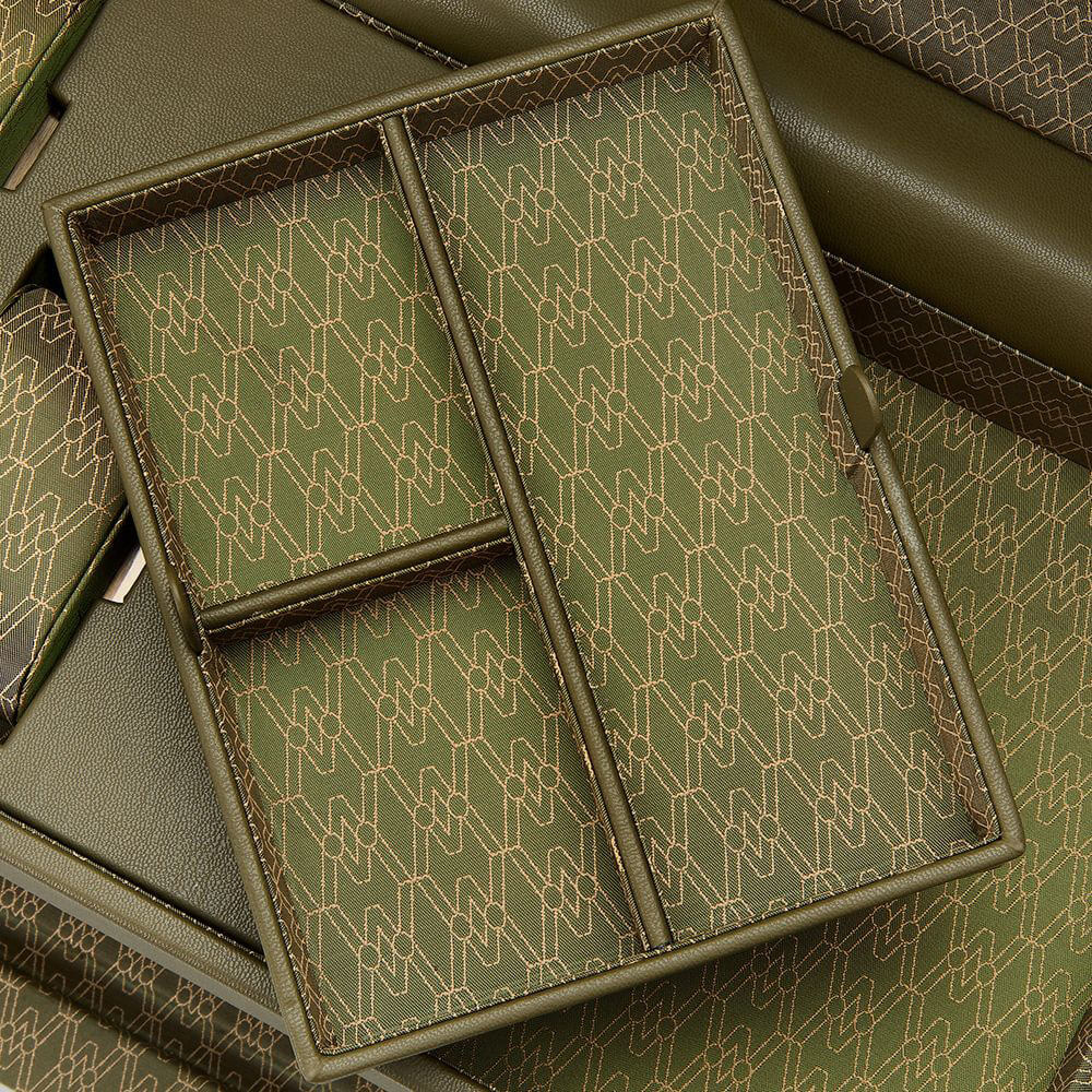 - Schowek na 3 zegarki na podwieszanych poduszkach na zegarki i wyjmowana tacka na akcesoria w górnej części.