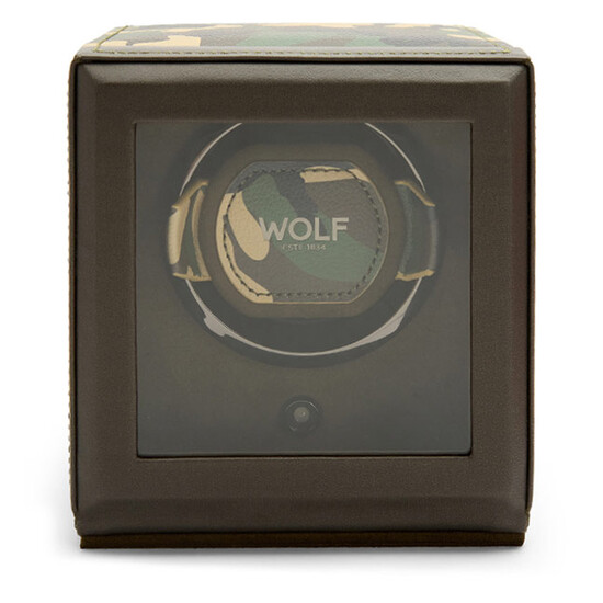 Rotomat WOLF Elements Cub 665130 na 1 zegarek z możliwością przechowania. Kwadratowy rotomat wykończony wegańską skórą w kolorze zielonym. WOLF Elements Cub to rotomat dwukierunkowy posiadający opatentowane rozwiązania dostępne wyłącznie w marce WOLF. Rotomat ten liczy dokładną liczbę obrotów, co pozwala z niezwykłą precyzją dbać o kondycję mechanizmu swojego zegarka. Wszystkie inne rotomaty, szacują tylko liczbę obrotów na podstawie interwałów czasowych.