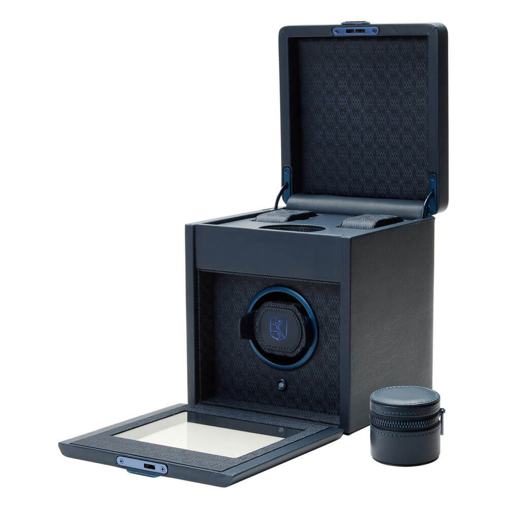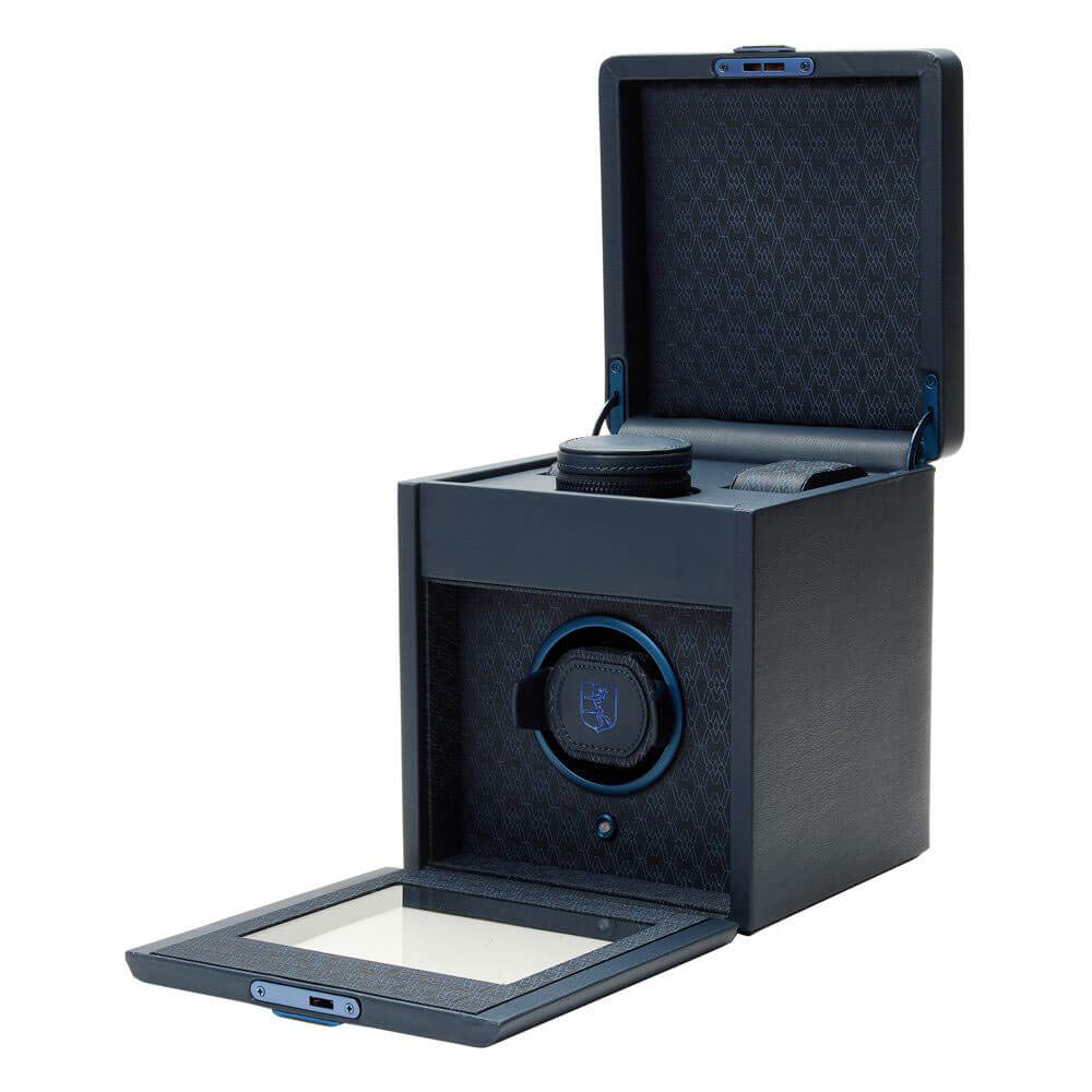 Rotomat wyróżnia się zaawansowaną technologią i funkcjonalnością. System Dynamic Lock-in Cuff zapewnia idealne dopasowanie zegarka, umożliwiając stabilne ułożenie czasomierza niezależnie od rozmiaru nadgarstka. Urządzenie oferuje szeroki zakres personalizacji dzięki aplikacji WOLF Bluetooth, pozwalając na precyzyjne ustawienie liczby obrotów na dzień (1–1999 TPD) oraz kierunku nakręcania (zgodnie z ruchem wskazówek zegara, przeciwnie lub w obu kierunkach). Dodatkowym atutem jest praktyczne wnętrze: trzy zawieszone poduszki na zegarki oraz wyjmowana tacka z wieloma przegródkami na drobne akcesoria, które pomagają utrzymać porządek. WOLF Single Earth Limited Edition to nie tylko narzędzie do pielęgnacji Twojego zegarka, ale również manifest stylu i zrównoważonego luksusu.