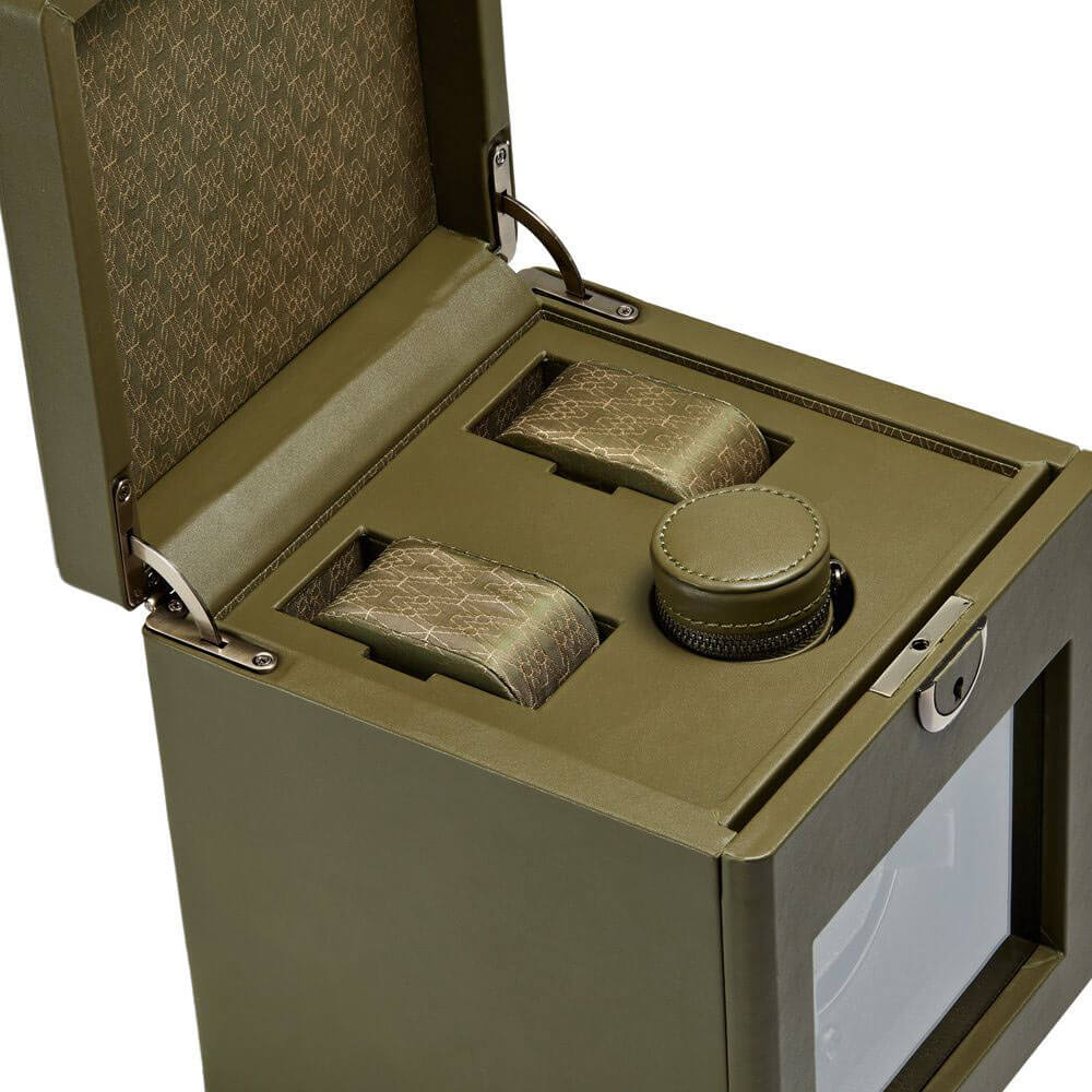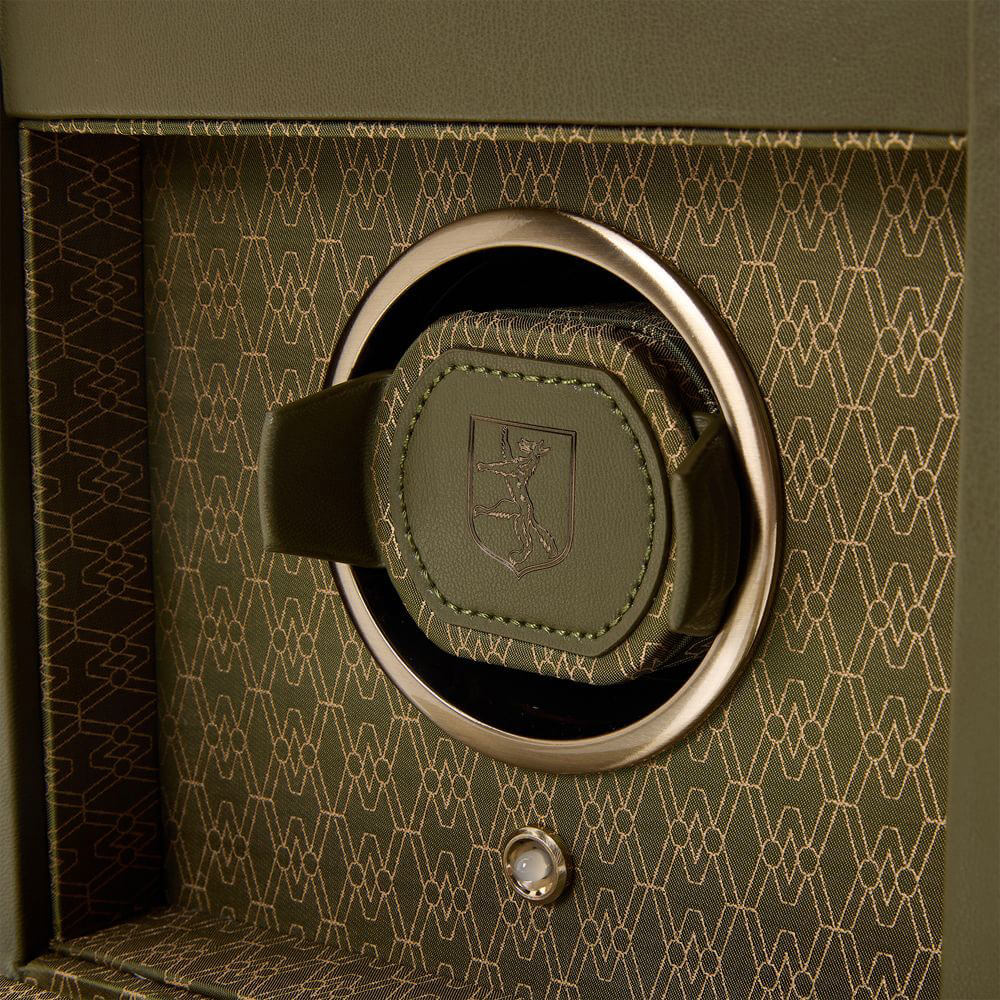 Rotomat wyróżnia się zaawansowaną technologią i funkcjonalnością. System Dynamic Lock-in Cuff zapewnia idealne dopasowanie zegarka, umożliwiając stabilne ułożenie czasomierza niezależnie od rozmiaru nadgarstka. Urządzenie oferuje szeroki zakres personalizacji dzięki aplikacji WOLF Bluetooth, pozwalając na precyzyjne ustawienie liczby obrotów na dzień (1–1999 TPD) oraz kierunku nakręcania (zgodnie z ruchem wskazówek zegara, przeciwnie lub w obu kierunkach). Dodatkowym atutem jest praktyczne wnętrze: trzy zawieszone poduszki na zegarki oraz wyjmowana tacka z wieloma przegródkami na drobne akcesoria, które pomagają utrzymać porządek. WOLF Single Earth Limited Edition to nie tylko narzędzie do pielęgnacji Twojego zegarka, ale również manifest stylu i zrównoważonego luksusu.