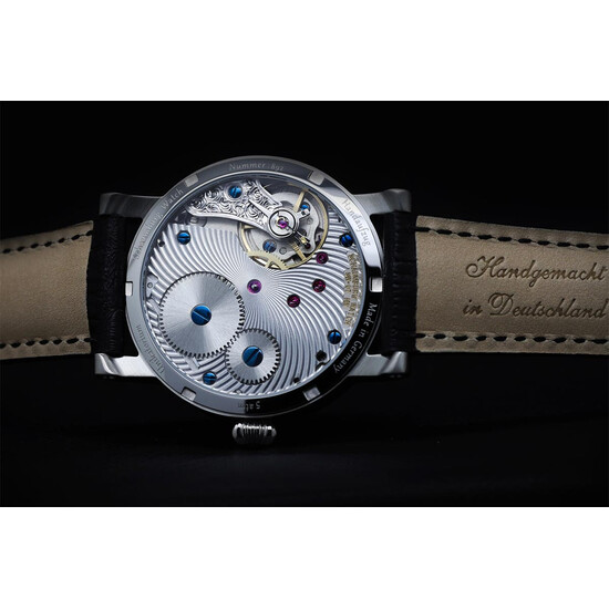 Koperta ma średnicę 42 mm, jest wykonana z wysoce odpornej na zarysowania i korozję stali szlachetnej oraz wykończona szczotkowaniem i polerowaniem. Chroni ona zegarek przed wodą do 50 metrów. Zawieszona jest na ręcznie szytym pasku skórzanym w głębokim, brązowym odcieniu. Na odwrocie kolejne fantazje przeżyją koneserzy artystycznego rzemiosła i rękodzieła oraz pierwotnego, mechanicznego zegarmistrzostwa. Znajduje się na nim transparentny dekiel, przez który widać ręcznie wykonany, między innymi grawerowany i szkieletowany mechanizm SW-07.1 z niebieskimi śrubami oraz rubinami syntetycznymi. Mechanizm ten cechuje ręczny naciąg, balans ETACHRON z zabezpieczeniem Incabloc, mostek 3/4, ręcznie grawerowane półmostek i sprężyna balansu.