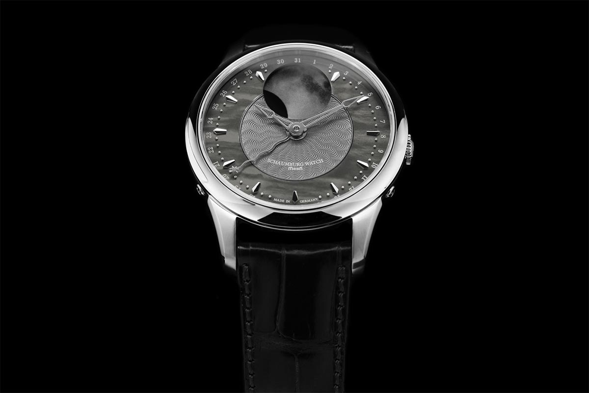 Zegarek Schaumburg SCH-MNANN został zaprojektowany przez właściciela firmy i wykonany ręcznie przez niemieckich specjalistów w kameralnej fabryce w miejscowości Rinteln. Fakt ten oddaje zapewnienie dbałości o każdy szczegół oraz włożenia serca w pojedynczy egzemplarz. Modele z kolekcji MooN powstają w wizji oddania wysokiego realizmu postaci Księżyca, będącego jednocześnie funkcją wiecznego wskaźnika faz księżycowych, jak i oryginalną atrakcją. Drugą część wizji stanowi wypracowanie możliwie najwyższej precyzji tej komplikacji. Dzięki zaangażowaniu, pasji i wieloletniemu doświadczeniu zegarmistrzów, produkujących zegarki Schaumburg, autorsko zmodyfikowany "Księżyc" zapewnia niemal absolutną dokładność chronometru. Dopiero po 122,5 roku cykl Księżyca odbiega od prawdziwego o jeden dzień. Zatem wyjątkowość i luksus tego modelu opiera się tak na niepowtarzalnym wyglądzie, jak i na zaawansowanej technologii, którą marka wykorzystuje na potrzeby swej, detalicznej wytwórni.