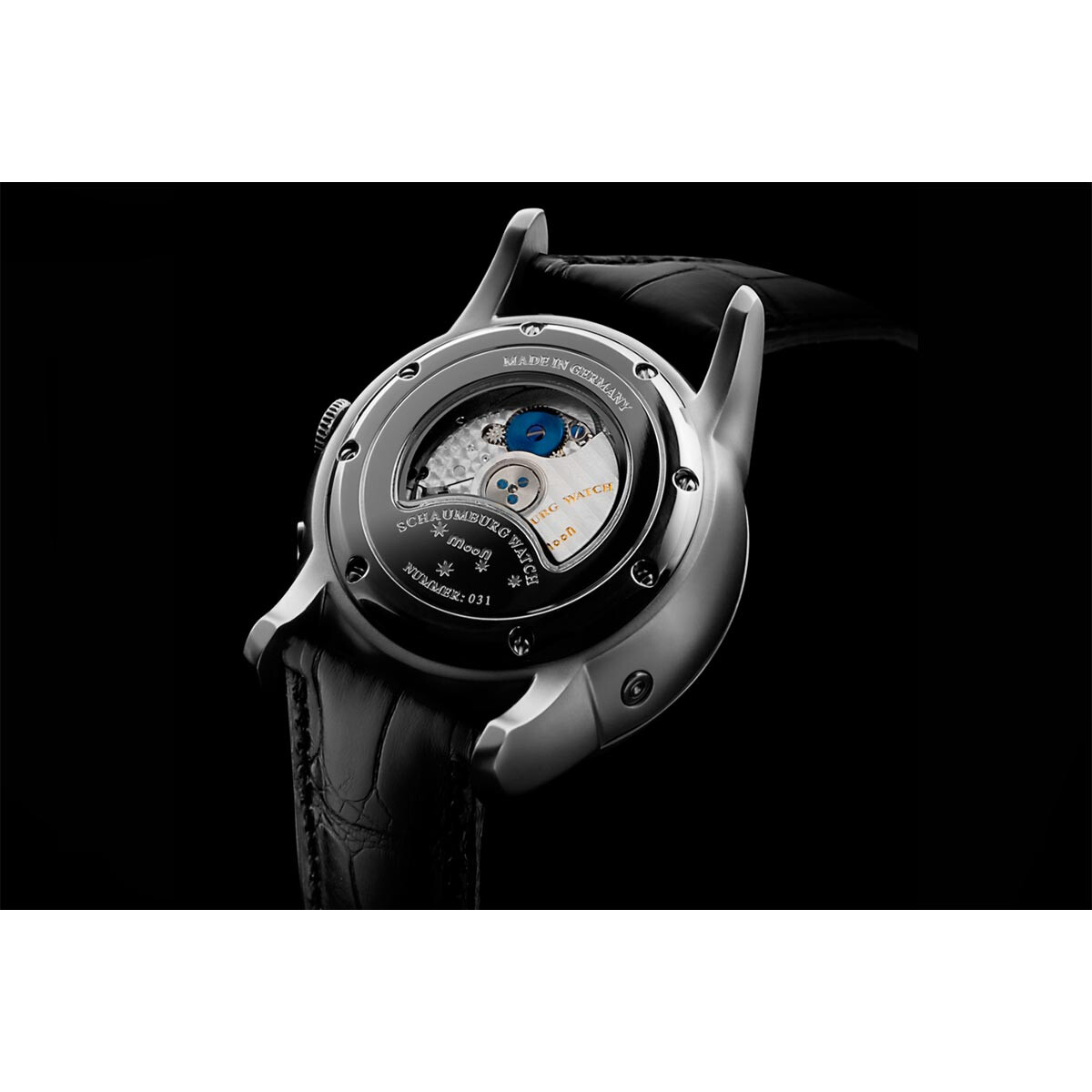 Mrocznie wciągający zegarek Schaumburg SCH-MNMEBP został zaprojektowany przez właściciela firmy i wykonany ręcznie przez niemieckich specjalistów w kameralnej fabryce w miejscowości Rinteln. Fakt ten oddaje zapewnienie dbałości o każdy szczegół oraz włożenia serca w pojedynczy egzemplarz. Modele z kolekcji MooN powstają w wizji oddania wysokiego realizmu postaci Księżyca, będącego jednocześnie funkcją wiecznego wskaźnika faz księżycowych, jak i oryginalną atrakcją. Drugą część wizji stanowi wypracowanie możliwie najwyższej precyzji tej komplikacji. Dzięki zaangażowaniu, pasji i wieloletniemu doświadczeniu zegarmistrzów, produkujących zegarki Schaumburg, autorsko zmodyfikowany "Krwawy Księżyc" zapewnia niemal absolutną dokładność chronometru. Dopiero po 122,5 roku cykl Księżyca odbiega od prawdziwego o jeden dzień. Zatem wyjątkowość i luksus tego modelu opiera się tak na niepowtarzalnym wyglądzie, jak i na zaawansowanej technologii, którą marka wykorzystuje na potrzeby swej, detalicznej wytwórni.