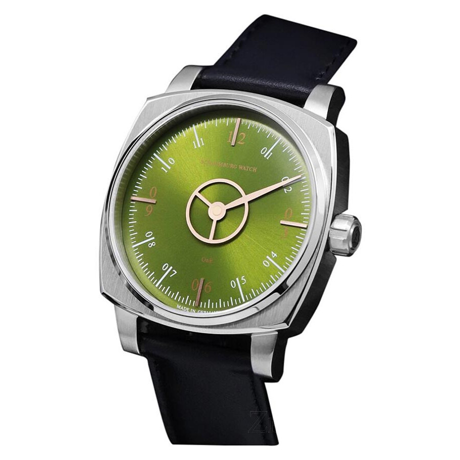 Schaumburg Squarematic Harmony SCH-SQHA, to oryginalny zegarek z kwadratową kopertą ze stali o wysokiej jakości, charakterystyczną dla serii Squarematic. Serii, liczącej już niemal 20 lat istnienia. W nowej wersji imponuje ona uniwersalnym rozmiarem oraz dopracowaną powierzchnią prezentującą zarówno szorstką stanowczość, jak i elegancki blask, bijący z krawędzi ramki oraz boków. Pierwotnie znajdował się w niej mechanizm z chronografem, dziś natomiast manufaktura Schaumburg, przedstawia wariant zegarka z jedną wskazówką.