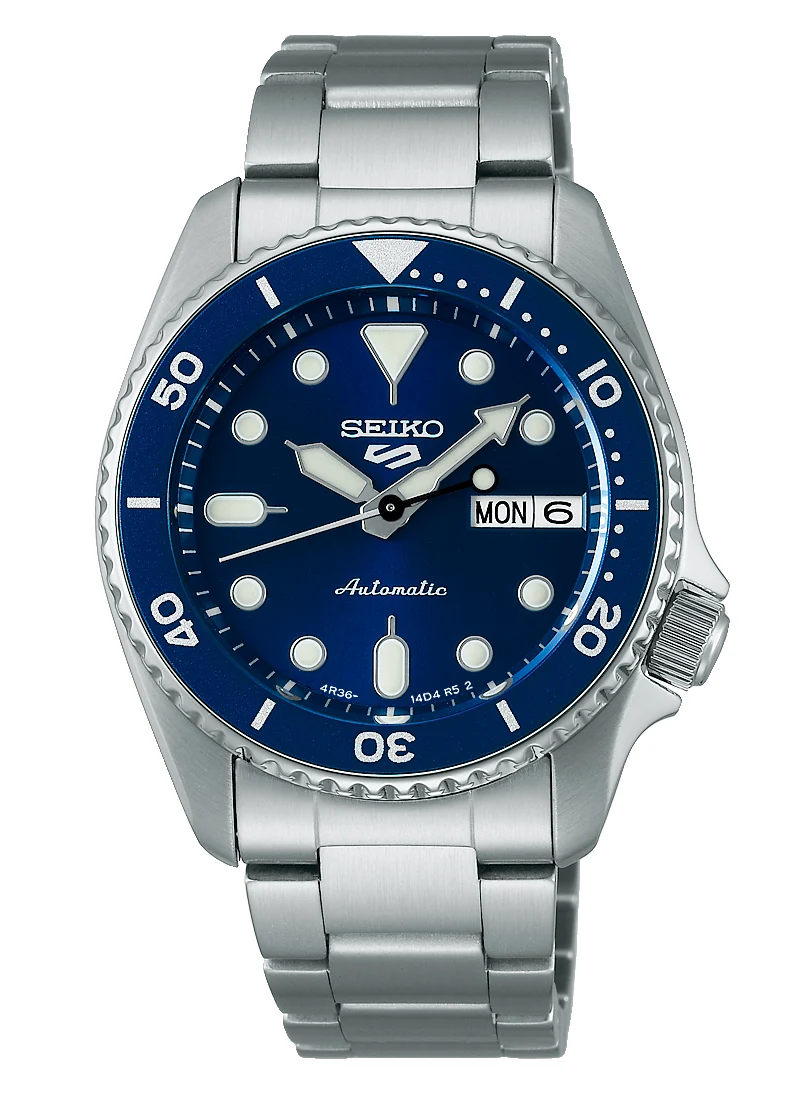Seiko 5 Sports SRPL77K1 to kompaktowy zegarek automatyczny 38 mm z niebieską tarczą i bezelem. Klasyka SKX w nowoczesnej, uniwersalnej formie.