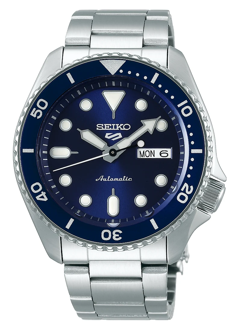 Seiko 5 Sports SRPD51K1 to automatyczny zegarek z granatową tarczą, stalową bransoletą i obrotowym bezelem. Klasyka w sportowym stylu.