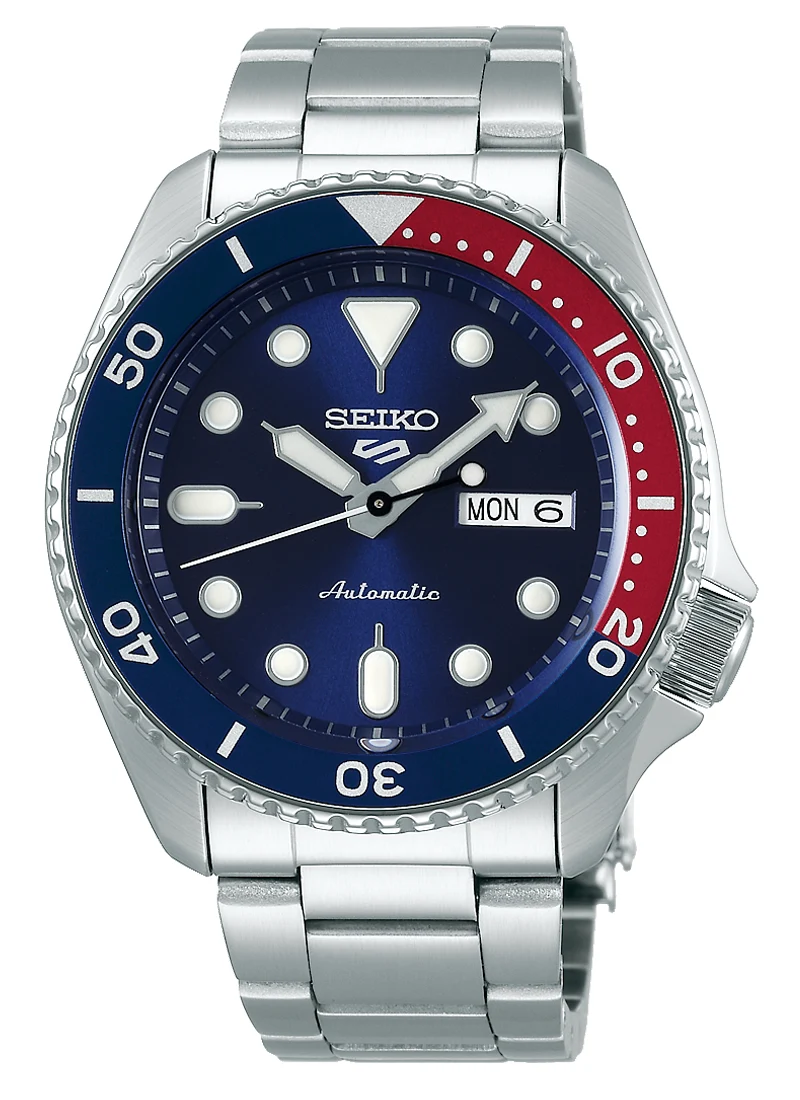 Seiko 5 Sports SRPD53K1 to automatyczny zegarek z bezelem Pepsi, granatową tarczą i mechanizmem 4R36. Klasyczny styl divera w nowoczesnej odsłonie.