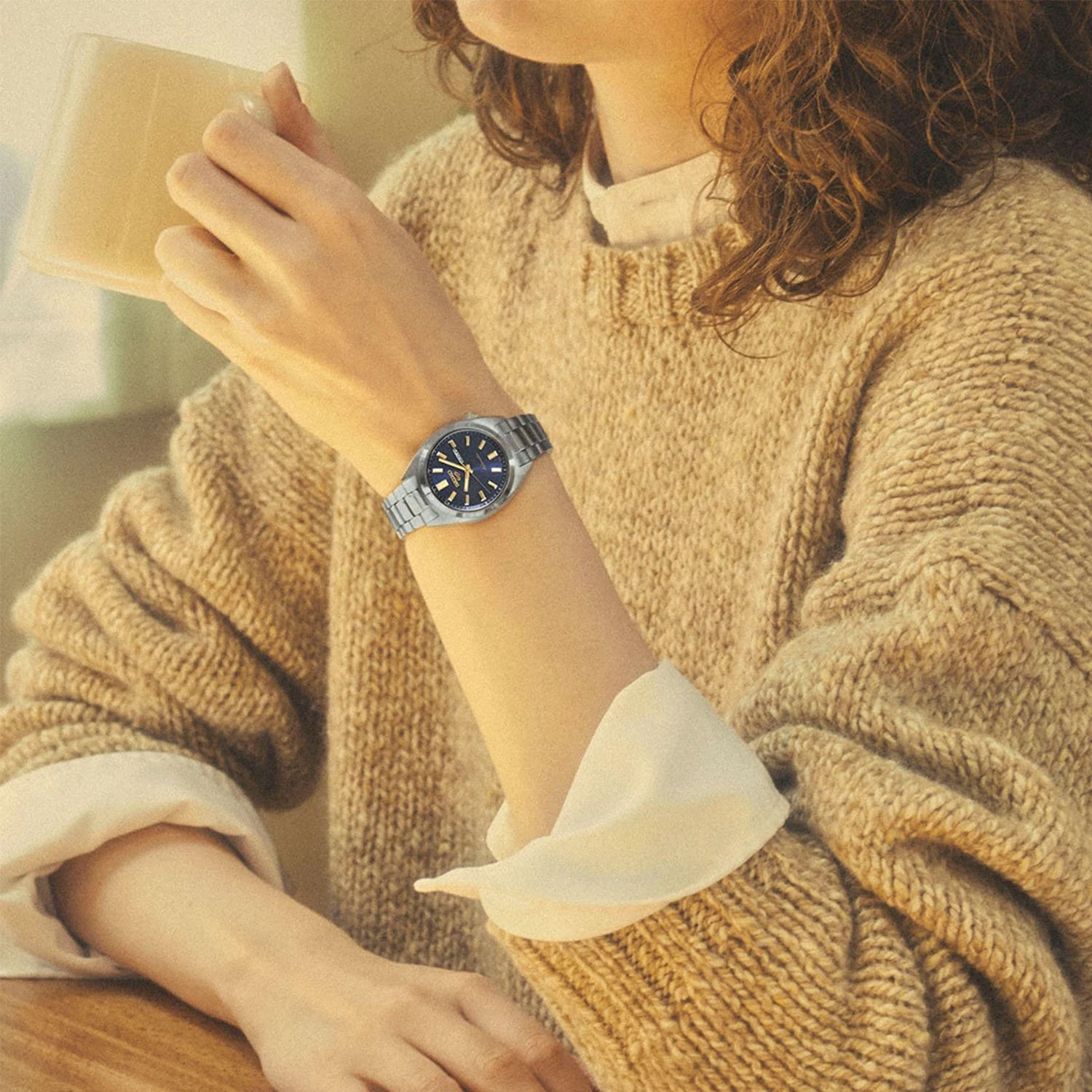 Zegarek zachwyca głęboką granatową tarczą zestawioną ze złotymi indeksami i wskazówkami, które dodają mu subtelnego luksusu. Detale o satynowym wykończeniu tworzą wrażenie głębi i światłocienia, a kompaktowa koperta o średnicy 32 mm idealnie dopasowuje się do kobiecego nadgarstka, zachowując proporcje pierwowzoru z serii SNXS. Całość uzupełnia elegancka bransoleta ze stali szlachetnej z zapięciem na przycisk, gwarantująca komfort i pewność noszenia.