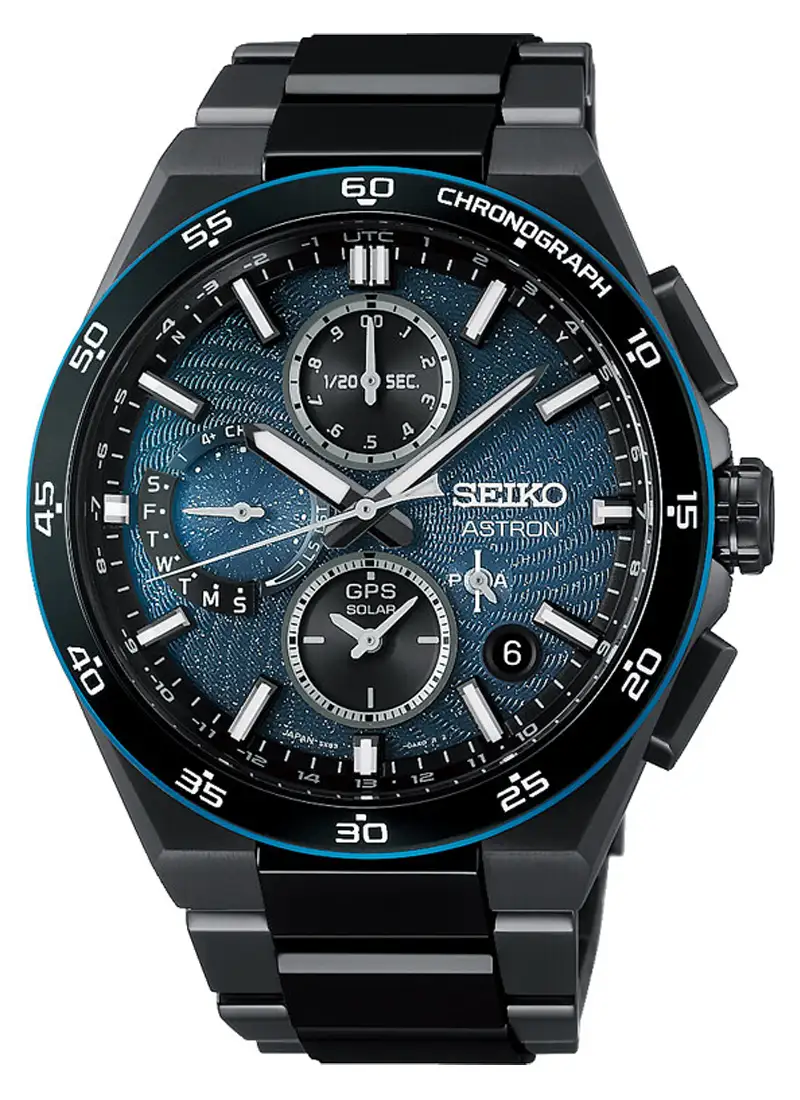 Seiko Astron GPS Solar Dual Time Chronograph SSH187J1 to limitowany zegarek męski, który przenosi motyw galaktyki spiralnej na nadgarstek w formie hipnotyzującej tarczy w kolorze niebieskim, petrol. Zamiast klasycznej gładkiej powierzchni dostają Państwo strukturę pełną ruchu i głębi, która zmienia się wraz z kątem światła, budując wrażenie kosmicznej przestrzeni.