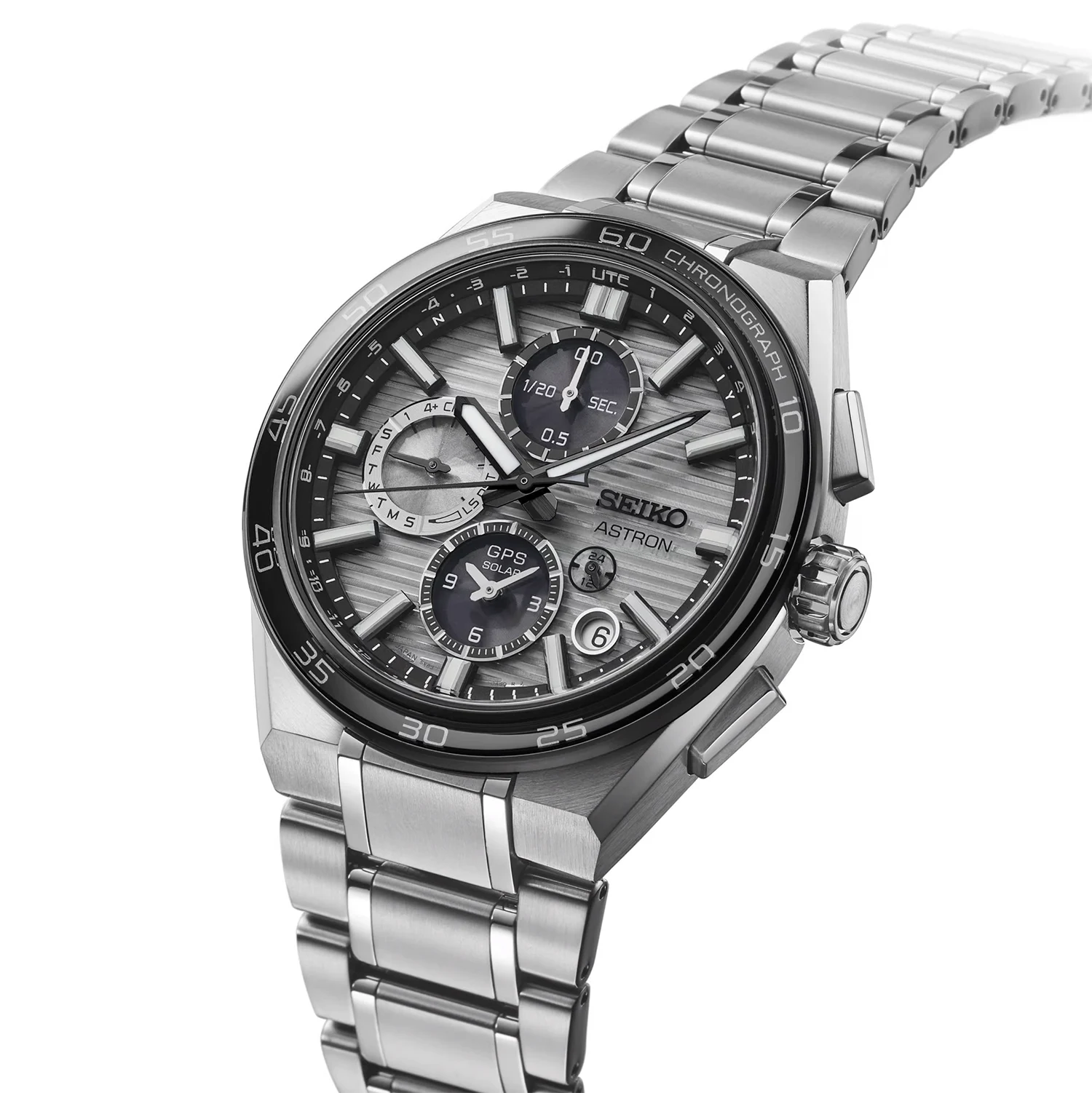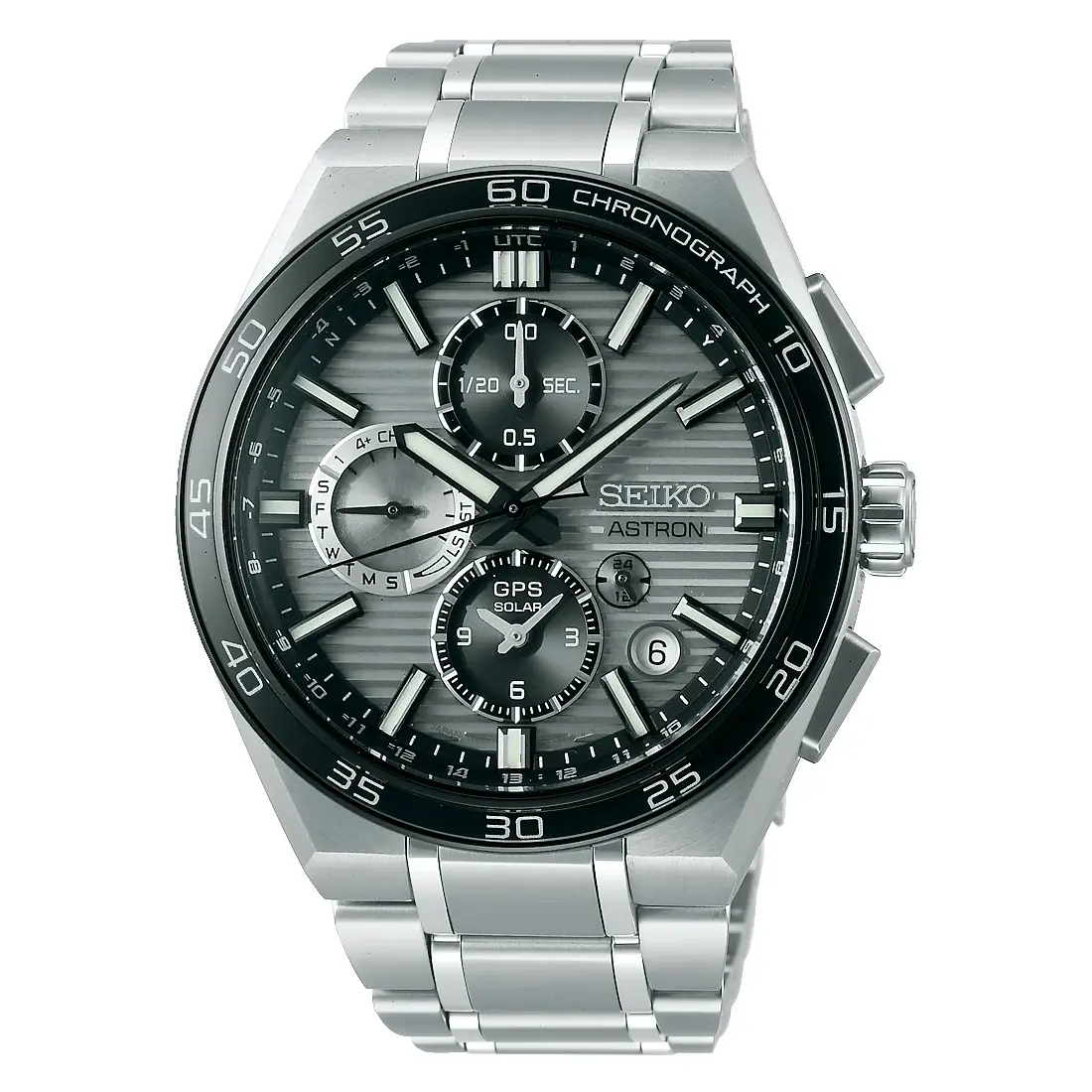 Seiko Astron GPS Solar Dual Time Chronograph SSH177J1 to nowoczesny zegarek męski, który łączy zaawansowaną technologię GPS Solar z eleganckim, industrialnym designem. W tej odsłonie kolekcji Astron uwagę przyciąga grafitowo-srebrna tarcza z poziomym szlifem, podkreślająca techniczny charakter modelu i jego futurystyczny styl.