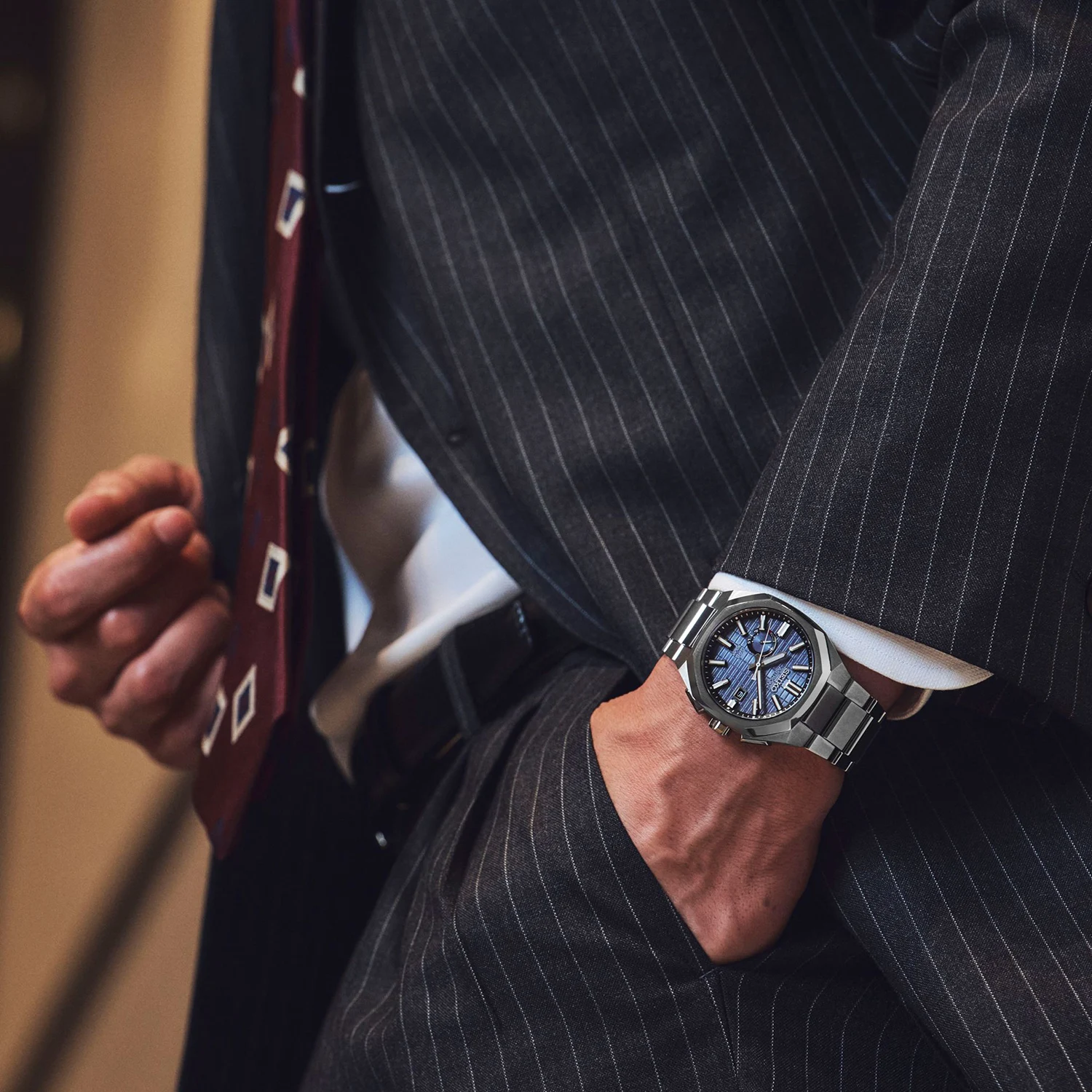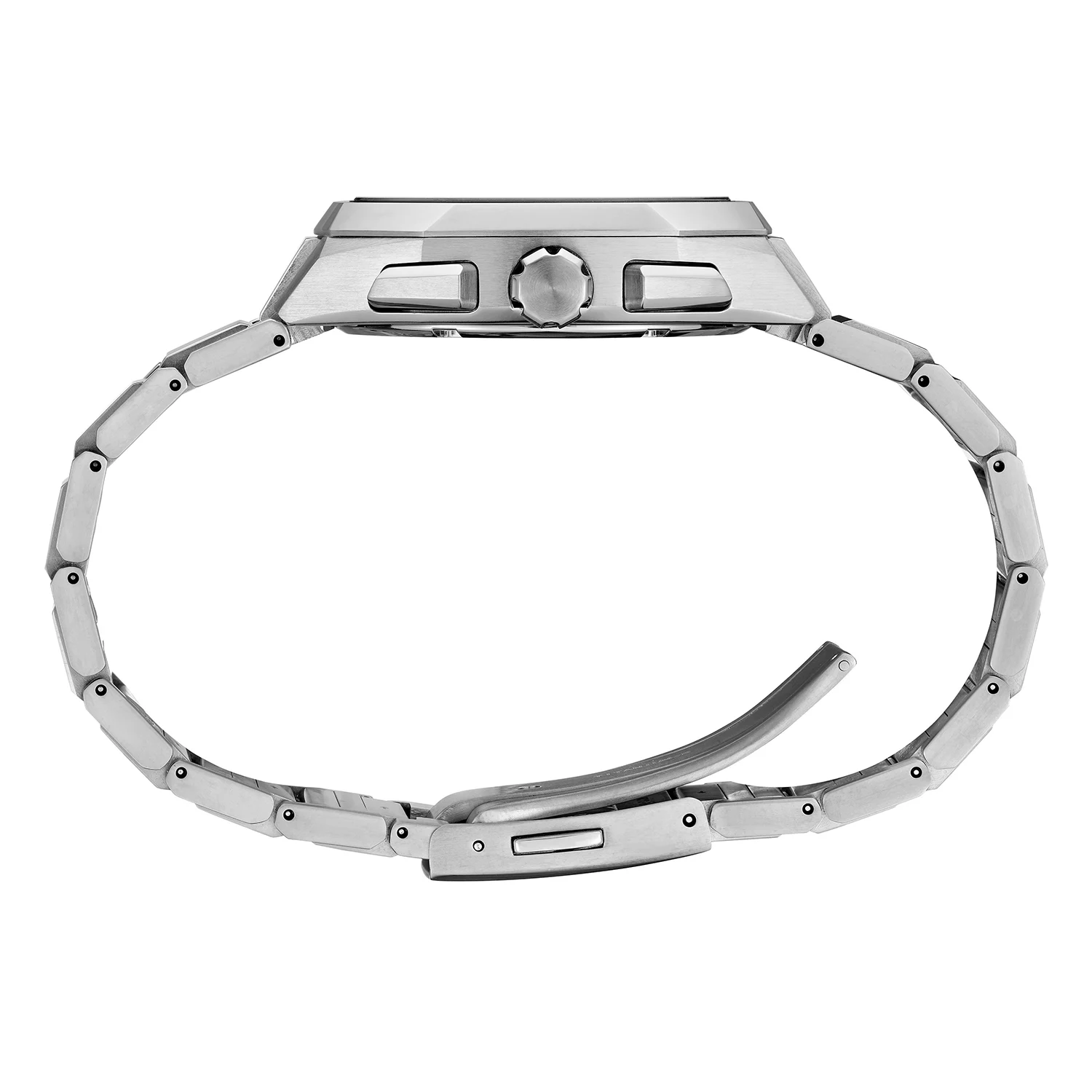 Koperta o średnicy 41,2 mm wykonana jest z tytanu pokrytego supertwardą powłoką, co gwarantuje odporność na zarysowania i lekkość użytkowania. Nowy, wielokątny bezel nadaje całości dynamicznej formy, a tytanowa bransoleta z potrójnym zapięciem oferuje wysoki komfort. Wodoszczelność na poziomie 10 barów sprawia, że zegarek doskonale sprawdzi się również w codziennym użytkowaniu.