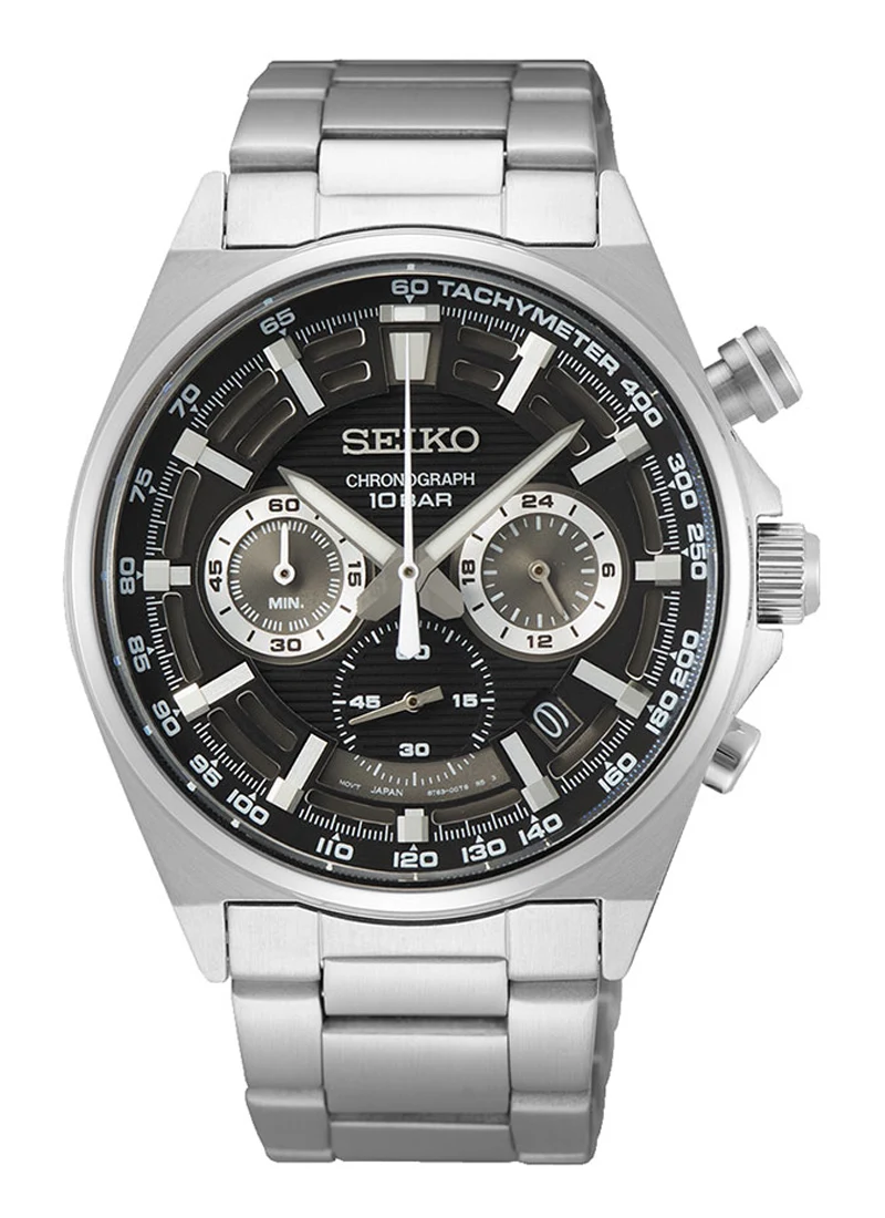 Sportowy zegarek męski Seiko Chronograph SSB397P1. Zasilany precyzyjnym, japońskim mechanizmem kwarcowym z funkcją chronografu i tachymetru. Dynamiczna stylistyka, tarcza z efektem 3D, nowoczesne, ostre linie, i szczotkowane wykończenie. Wodoszczelny do 100 metrów zegarek Seiko Chronograph to idealna oferta dla mężczyzn ceniących narzędziowy design i sportową funkcjonalność.